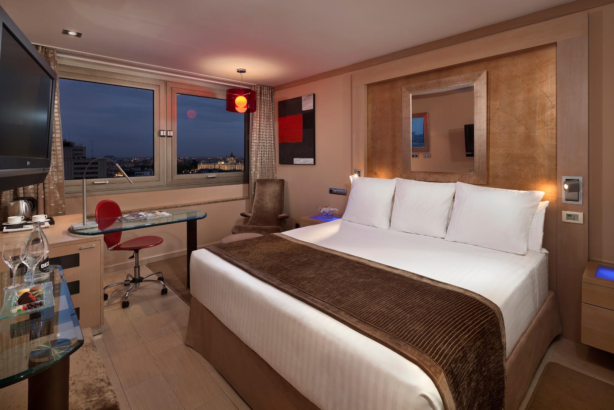 With views of the Royal Palace, Melia Princesa is a luxury hotel located in Madrid, 8 minutes' walk from Plaza Espana and Gran Via. It offers a gym and modern rooms with flat-screen satellite TV.The upper floors of the hotel are dedicated to The Level exclusive rooms, with panoramic views over the city or the mountains as well as specific superior services and facilities such as a wellness area or an indoor pool for adults only*. Guests can enjoy elegant and spacious rooms with pillow menu, private check-in and check-out space, Nespresso space, concierge service and high quality and exclusive bathroom amenities and toiletries, organization of activities around the city, a private area with drinks and snacks and private show cooking, press in the lounge, etc.