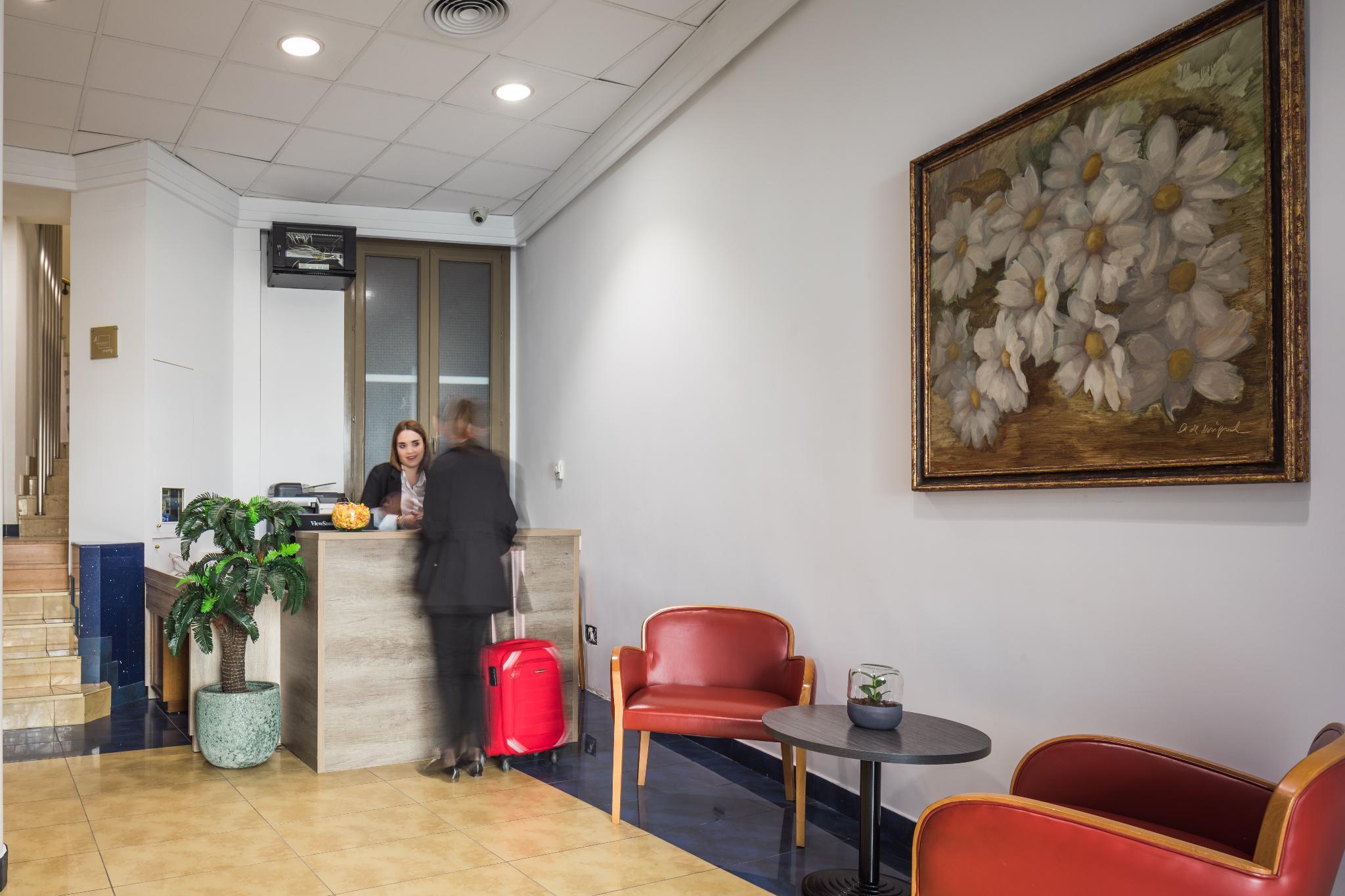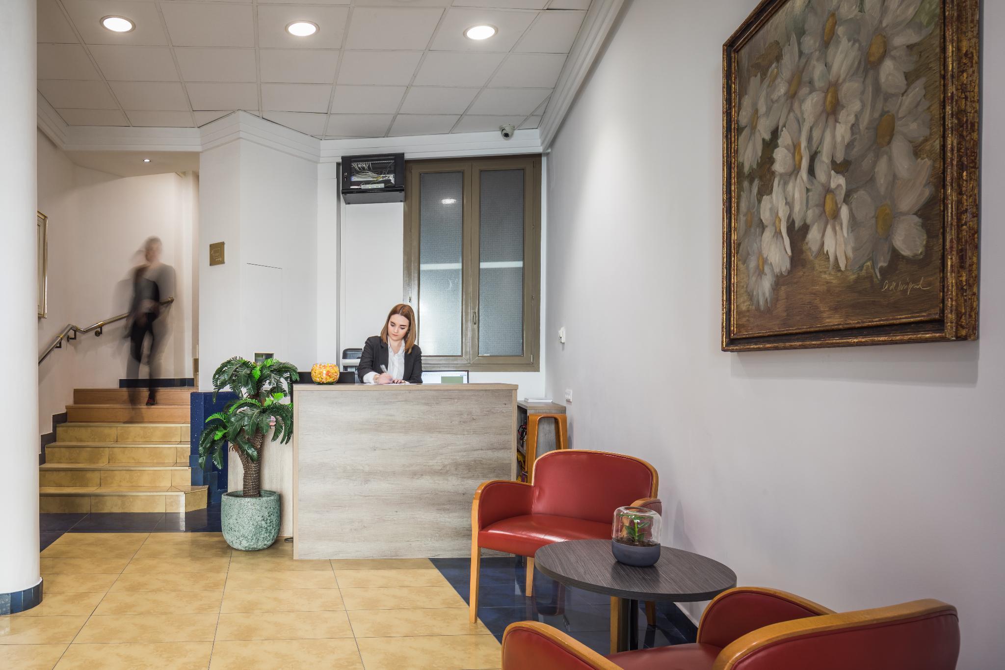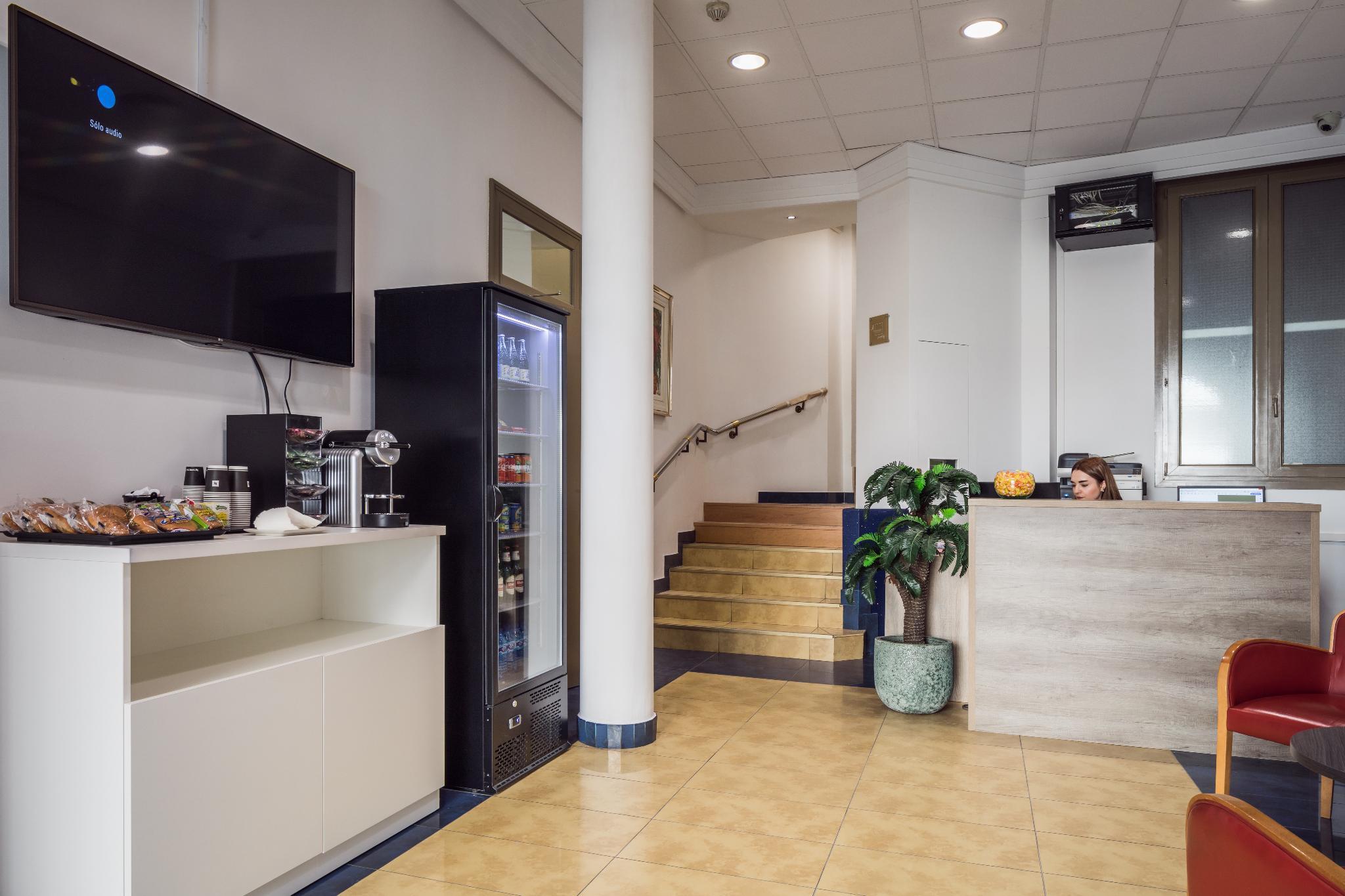 This hotel is nestled on a quiet side street near "Gran Via", right in the heart of Spain's capital. It is the ideal starting point for exploring everything that the city has to offers, as it is just minutes away from Plaza Mayor, Puerta Del Sol, the Royal Palace and Chueca. The surrounding area is home to a number of restaurants and typical tapas-bars- perfect for enjoying a relaxed dinner at the end of the exciting day. The 5-storey venue itself houses a small coffee-shop where guests can sip a cup of the refreshing beverage and have a small snack, it is also where the continental breakfast is served each morning. The comfortable rooms are harmoniously decorated and include an ensuite bathroom, cosy beds, double-glazed windows for extra comfort and pretty much everything needed for hassle-free stay.