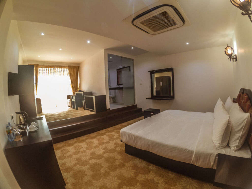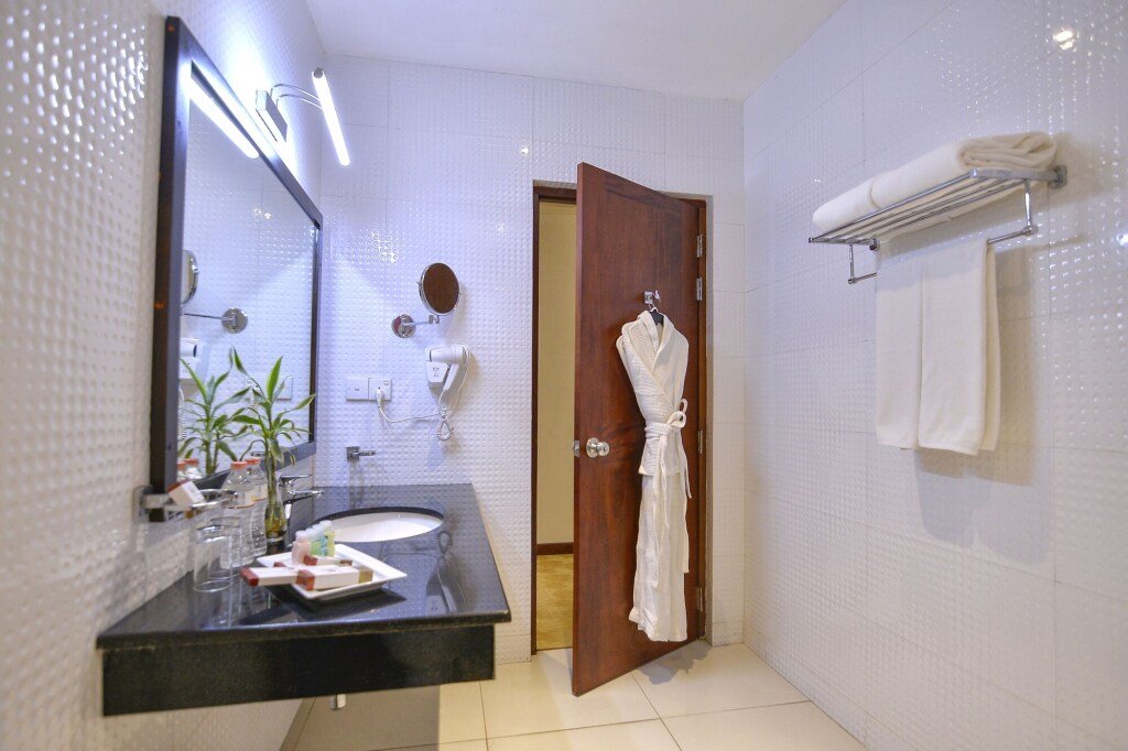 In the room, there is an alarm clock, a shower, a TV, a mini-bar, a bathrobe and slippers. Please note that the listed services may not be available in all the rooms.