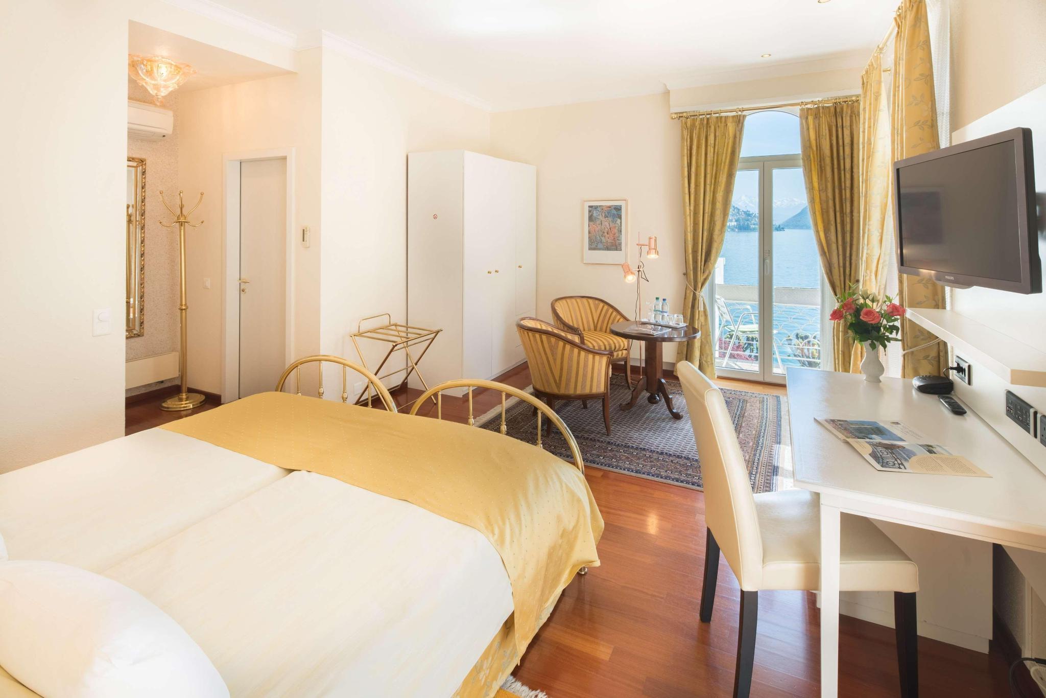 Romantic Hotel with a long tradition, situated on the lake side promenade. Individually furnished and comfortable new rooms with air conditioning, a balcony and a superb view over the bay. Extravagant restaurant surrounded by palm trees, offering Italian cuisine. High tech conference center and top infrastructure suitable for business people. Open air swimming pool, private parking. A few walking minutes from the historic, shopping and business center, public transports and boat station nearby. Book at the Best Western Hotel Bellevue Au Lac today!