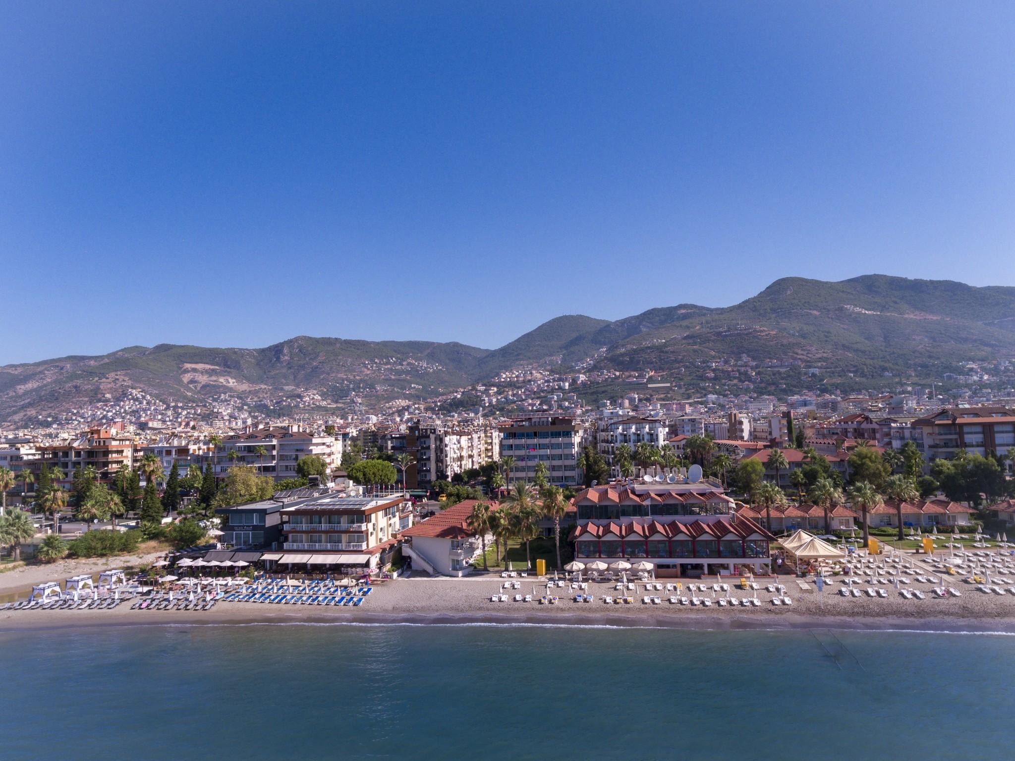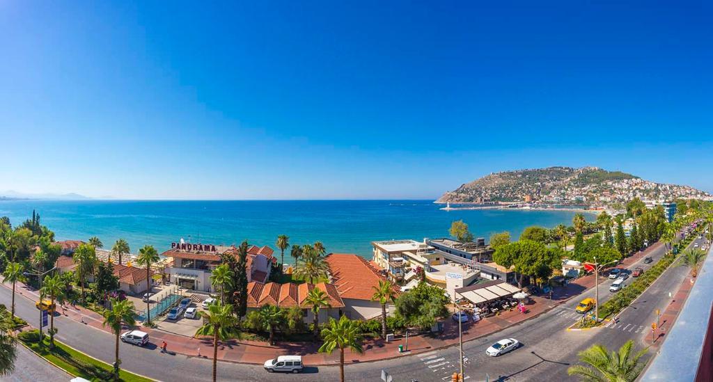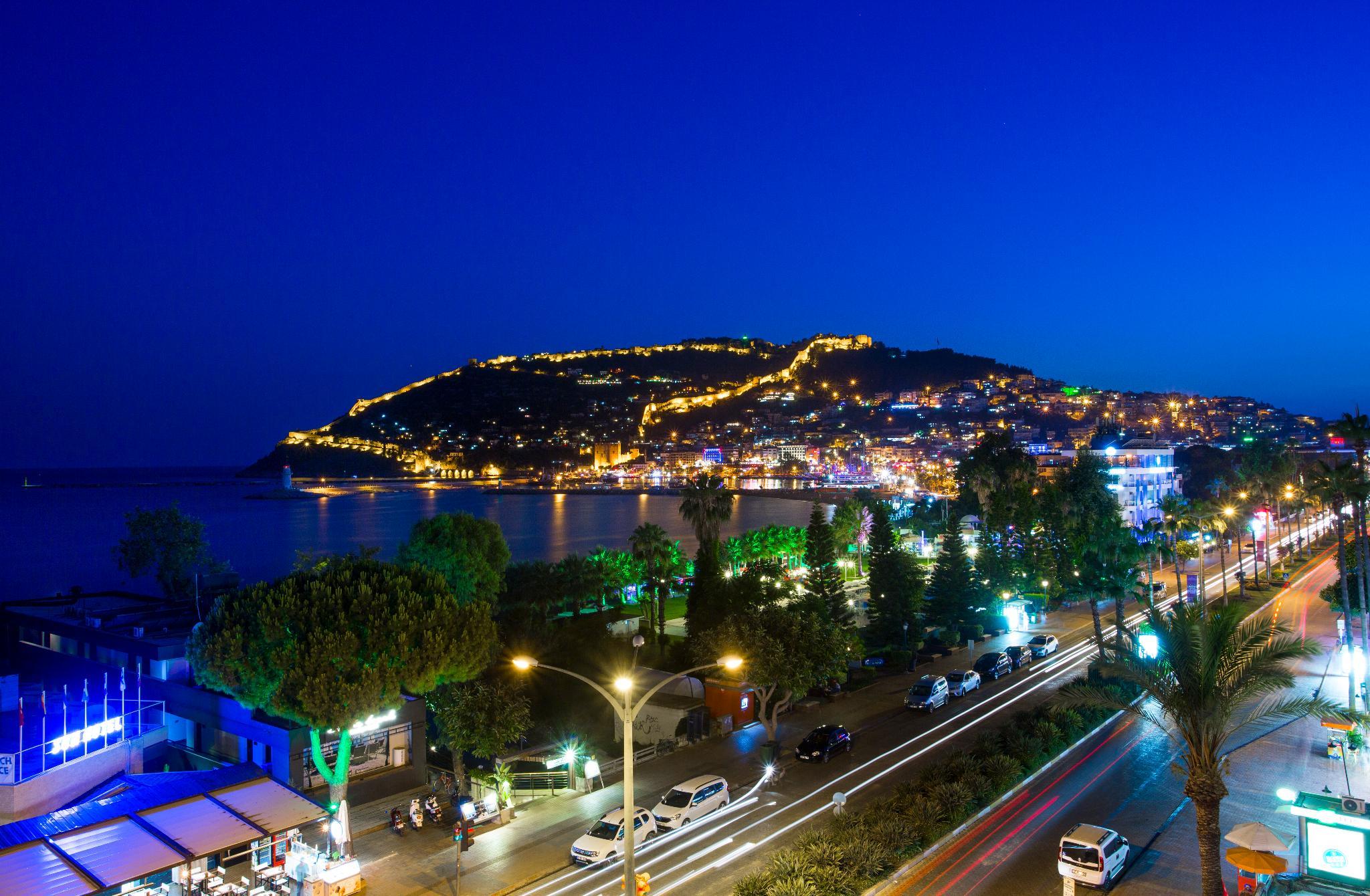 Enjoying excellent panoramic views over the Mediterranean Sea and the harbour of Alanya, this modern hotel is separated from the beach only by a coastal road. A spa area with hammam guarantees absolute relaxation, the centre of Alanya with its large variety of shops, restaurants, bars and cafes is within a short stroll. The international airport of Antalya is about 120 km away.