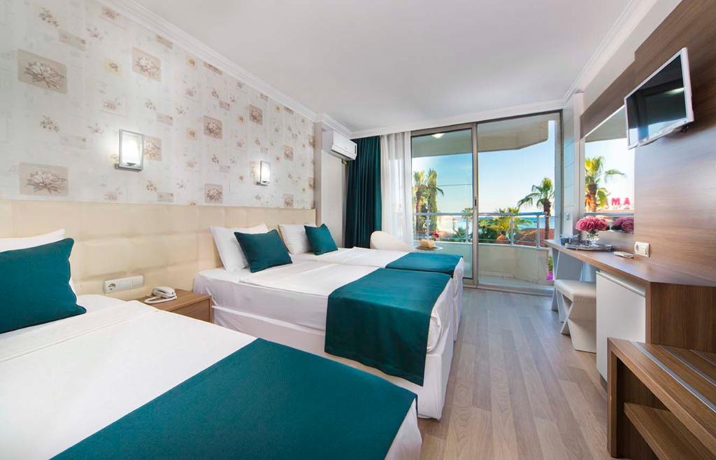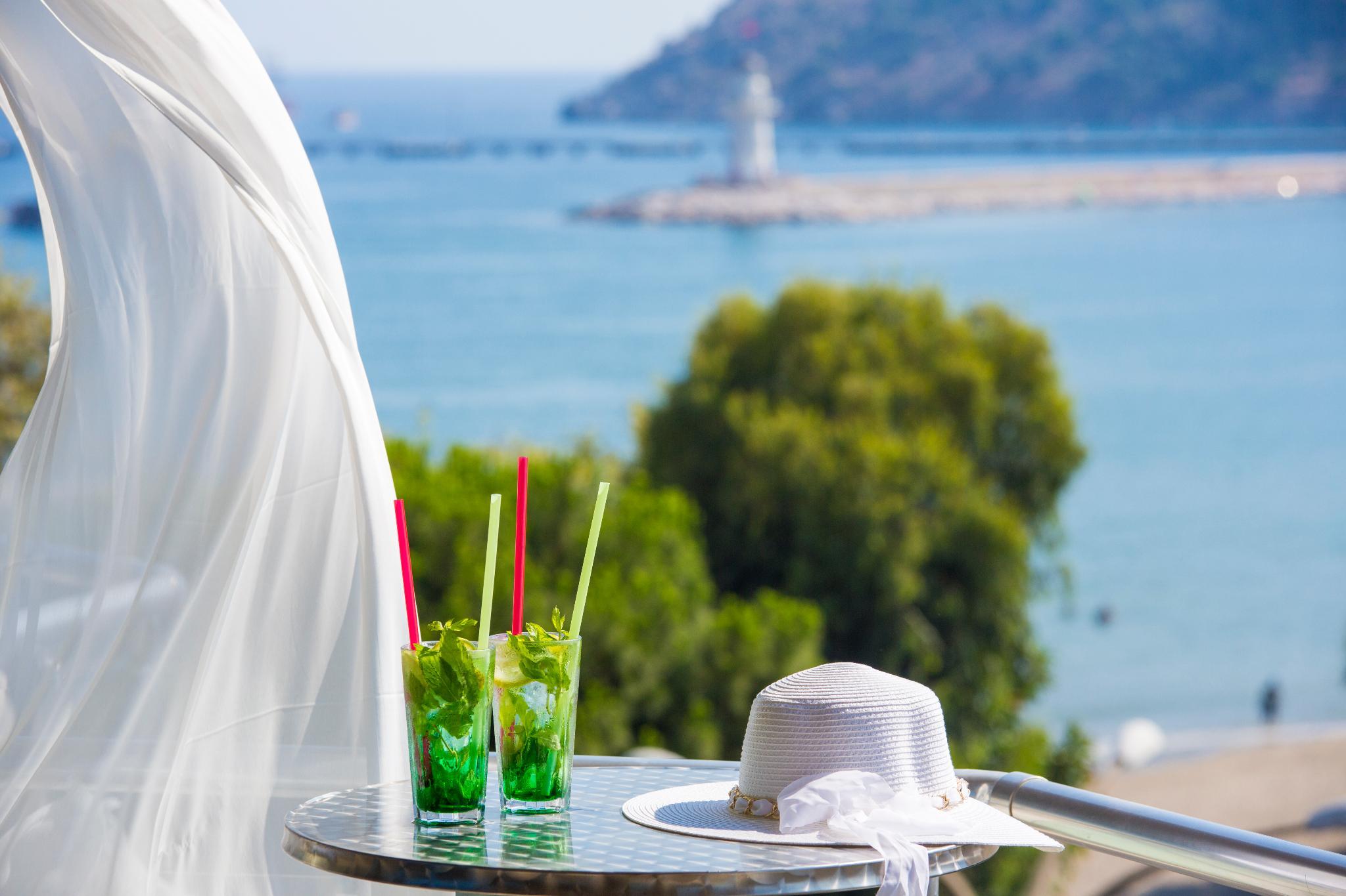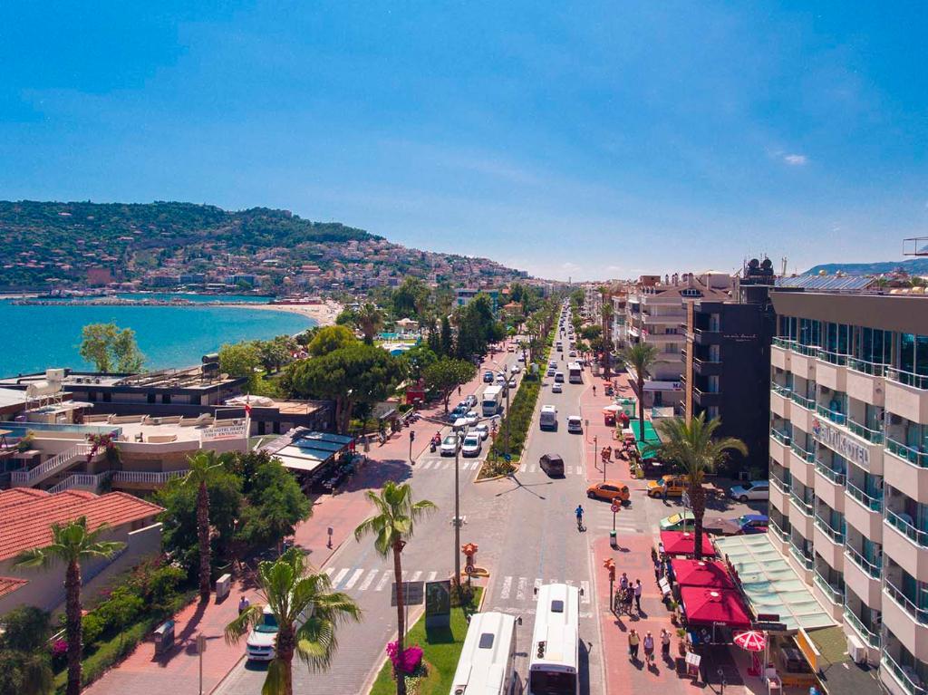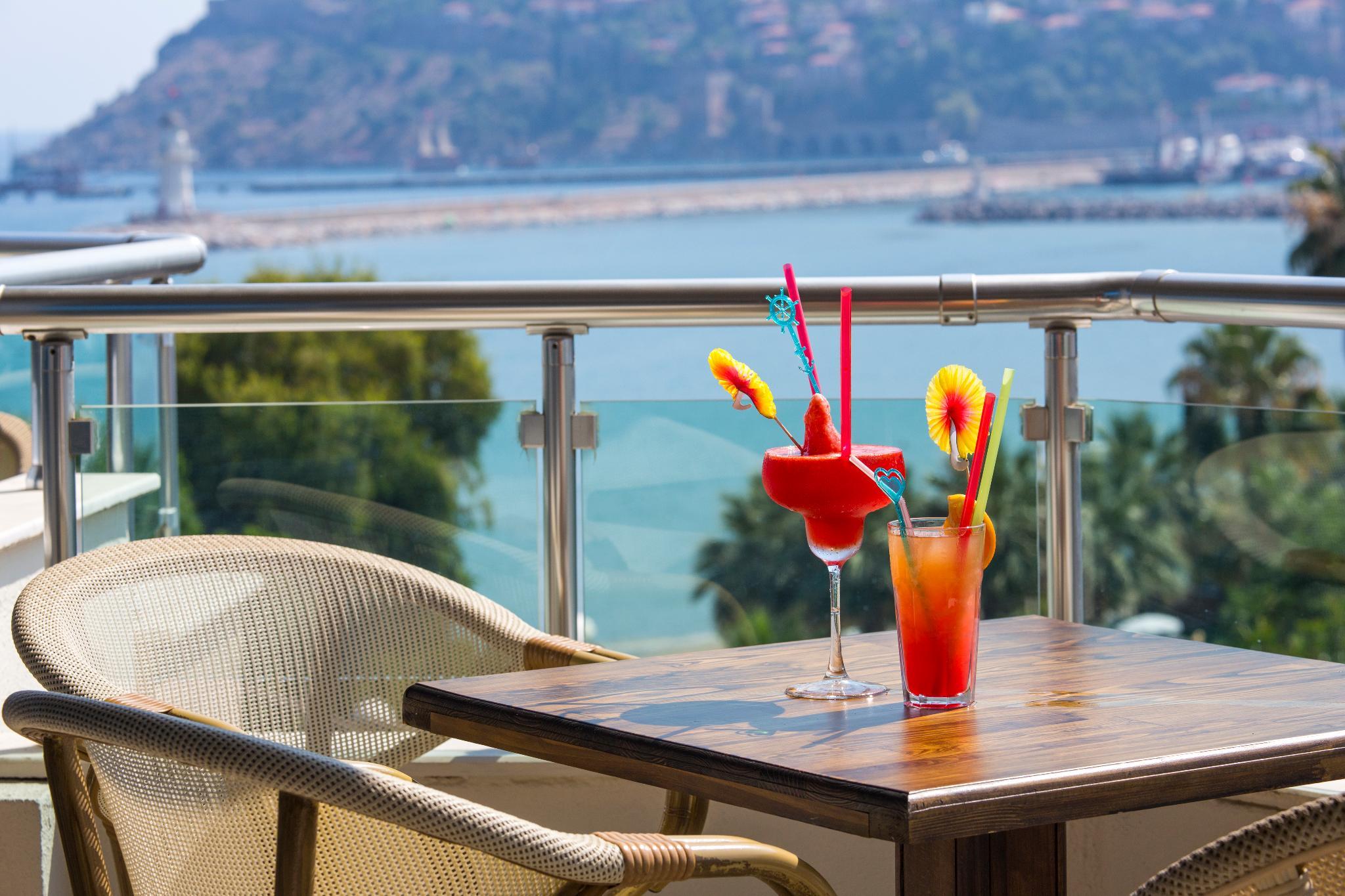 Enjoying excellent panoramic views over the Mediterranean Sea and the harbour of Alanya, this modern hotel is separated from the beach only by a coastal road. A spa area with hammam guarantees absolute relaxation, the centre of Alanya with its large variety of shops, restaurants, bars and cafes is within a short stroll. The international airport of Antalya is about 120 km away.