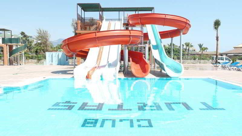 Situated directly on the sandy beach and overlooking the beautiful turquoise waters of the Mediterranean Sea, this modern hotel is surrounded by lush green gardens. A large variety of sports facilities, two outdoor pools, two children's pools, a fitness centre, a hammam, amphitheatre and nightclub are offered. The city of Alanya with its famous attractions is just a short drive away.