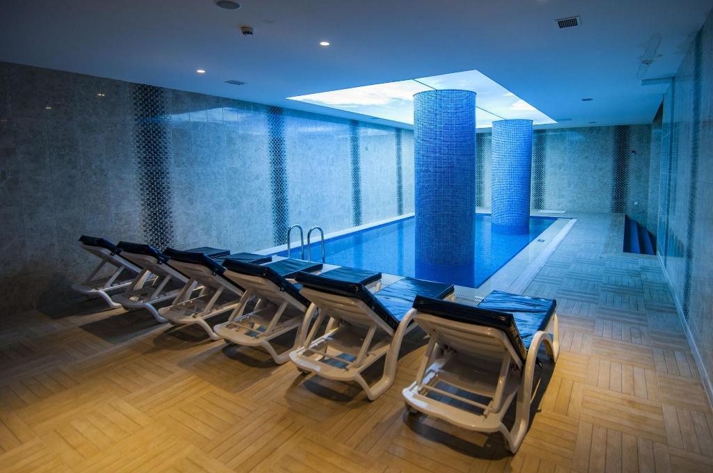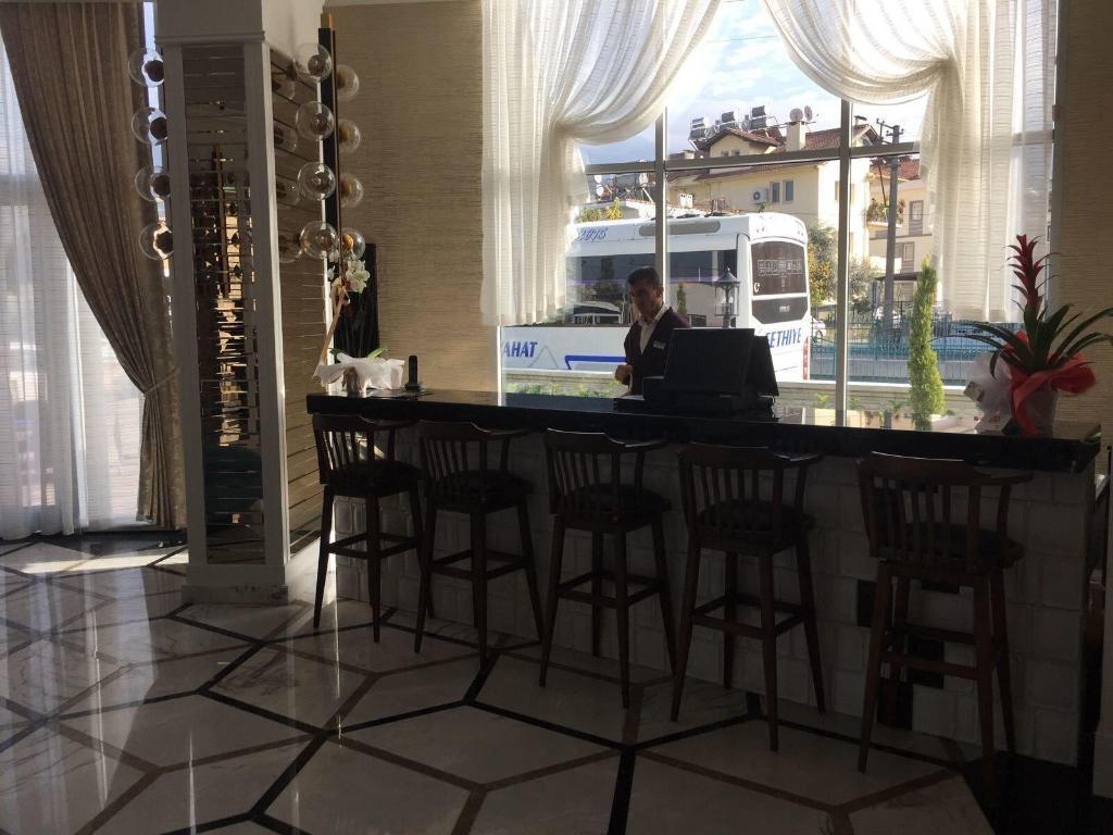 This comfortable hotel can be found in Fethiye. The establishment's common areas include Wi-Fi internet connection. The front desk offers 24-hour reception. Communal areas are wheelchair accessible at this hotel. Exelans Hotel & SPA provides parking for guests' convenience. Travellers will appreciate the dining options available at this property. At this hotel, there are plenty of health and wellness services which guests can take advantage of. Corporate travellers may avail for business facilities and services. Some services of Exelans Hotel & SPA may be payable.