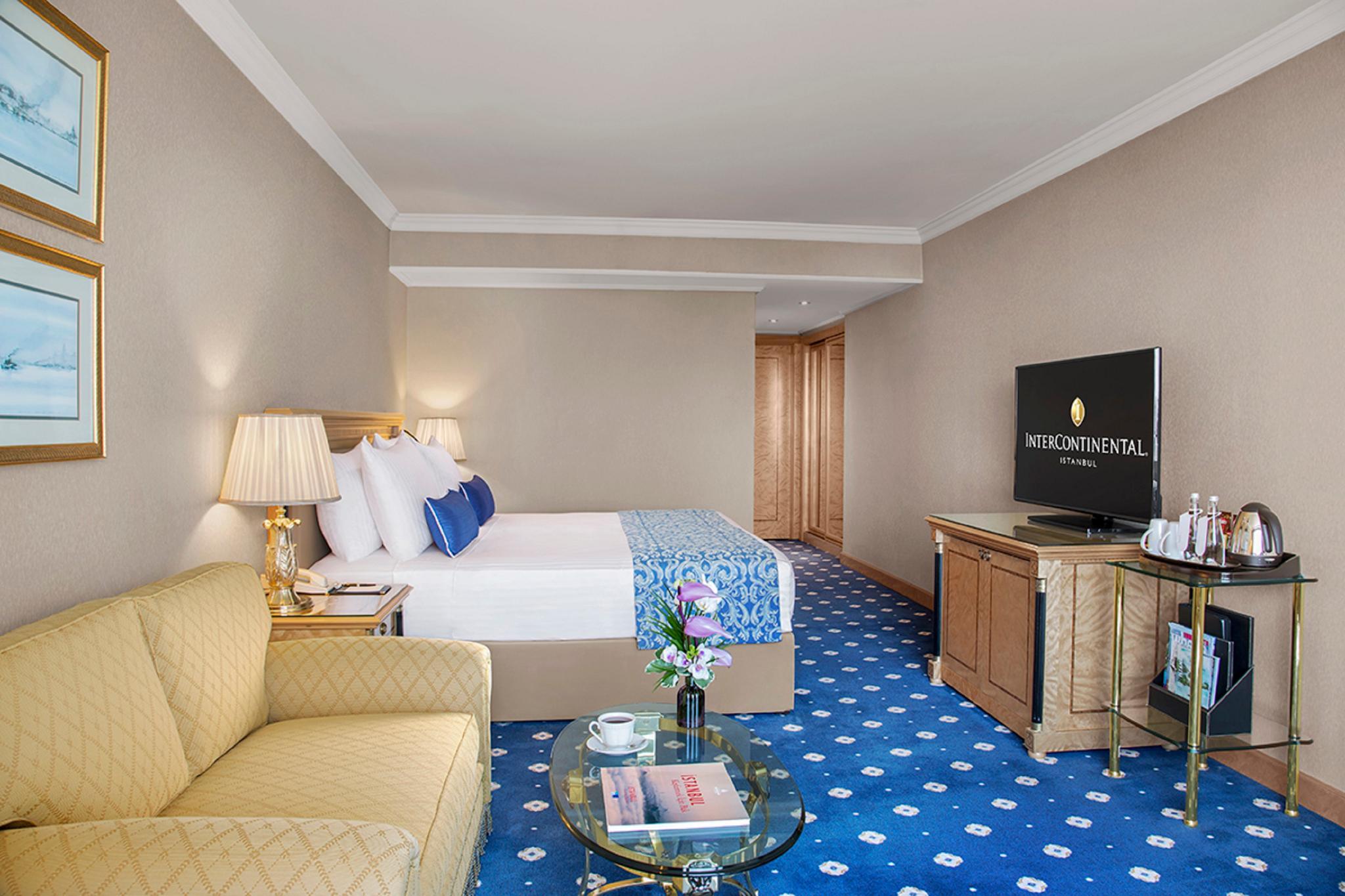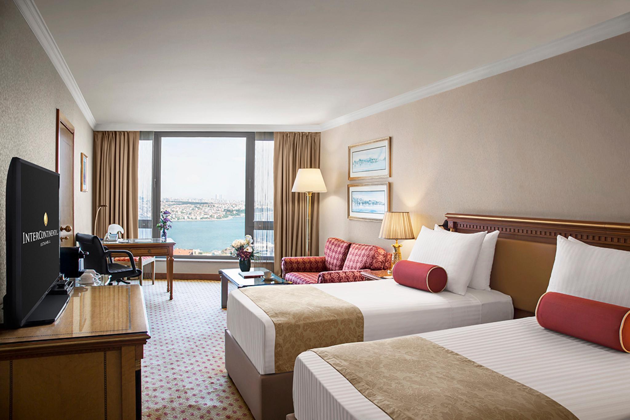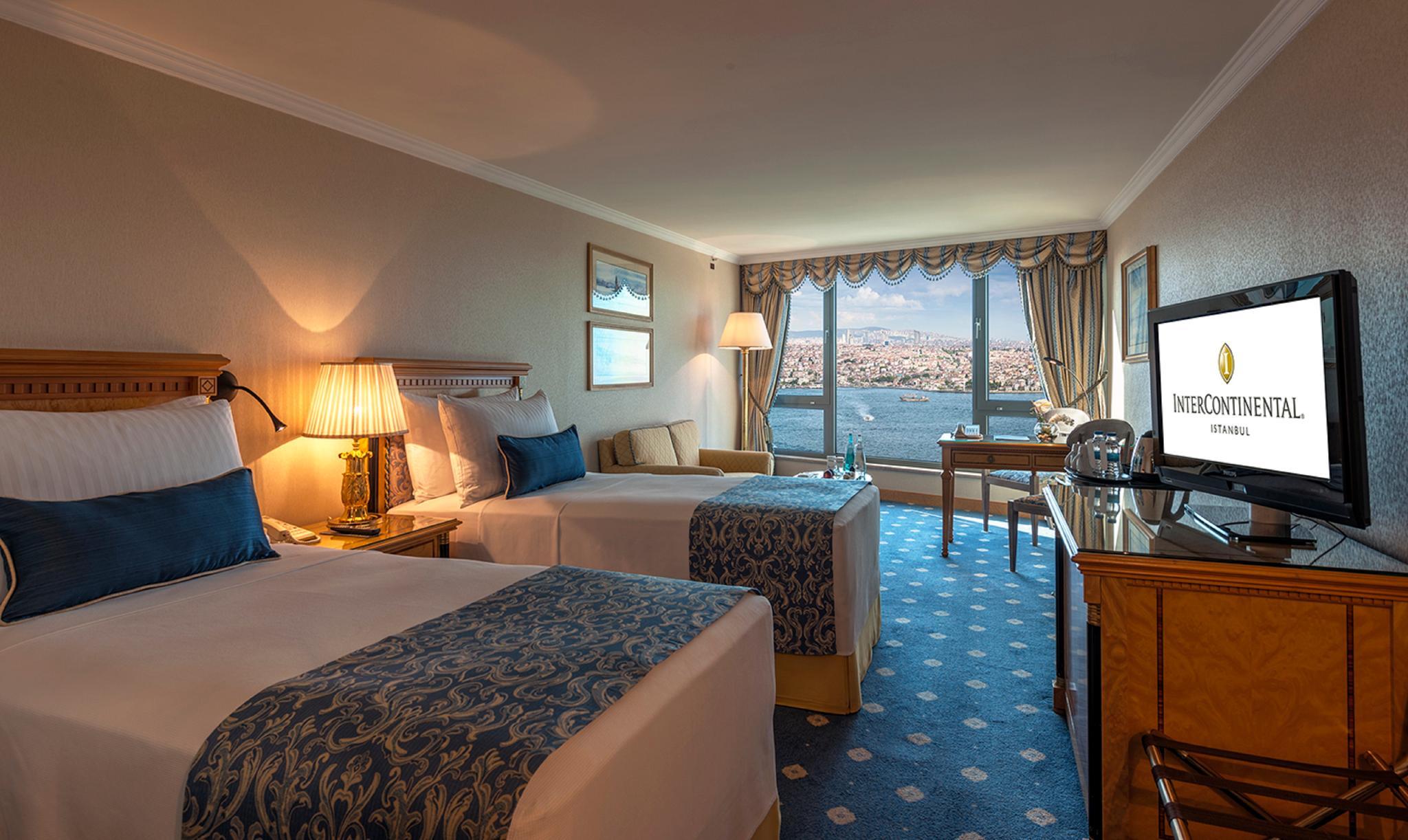 Refurbished in 2013, the hotel comprises a total of 390 rooms spread over 20 floors and features modern, elegantly furnished accommodation suitable for both business and leisure guests. InterContinental Istanbul hotel has deluxe rooms and suites with breathtaking views over the Bosphorus and the historic city skyline. Located in the heart of the city, just a few hundred metres north of Taksim Square and within walking distance many popular attractions, fashionable shops, entertainment venues and the business district. Turkish Airlines shuttle service is close-by and Taksim underground station is less than a 5-minute walk away.Exceptional on-site dining offers everything from gourmet buffet breakfasts to traditional Turkish cuisine. Spa Intercontinental offers an array of services to suit every occasion, traditional Turkish massage incorporating unique soothing balms from across the Middle East, sauna, massage, fitness, cardio.