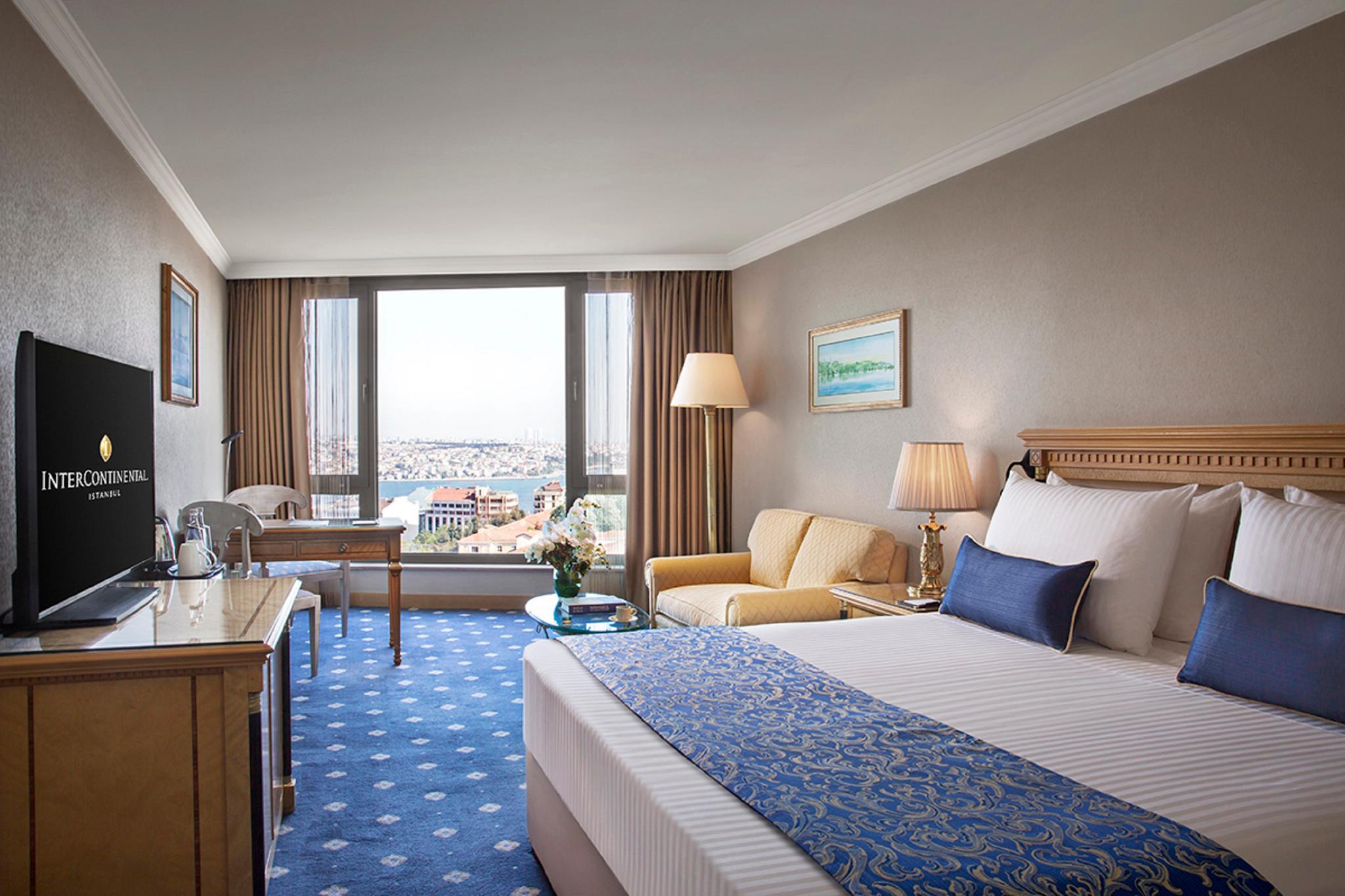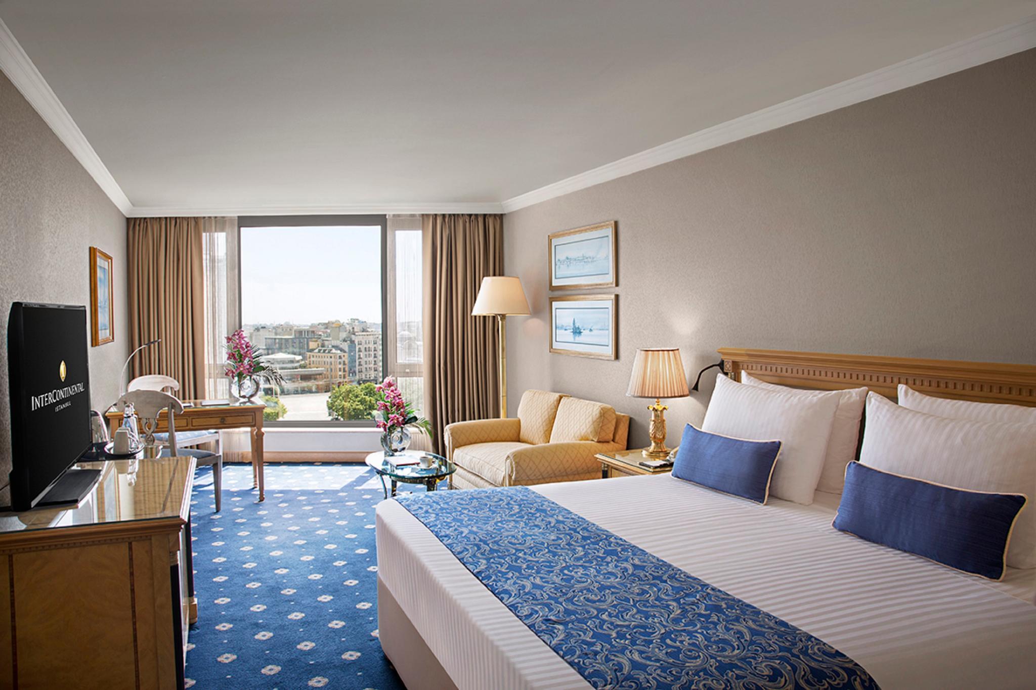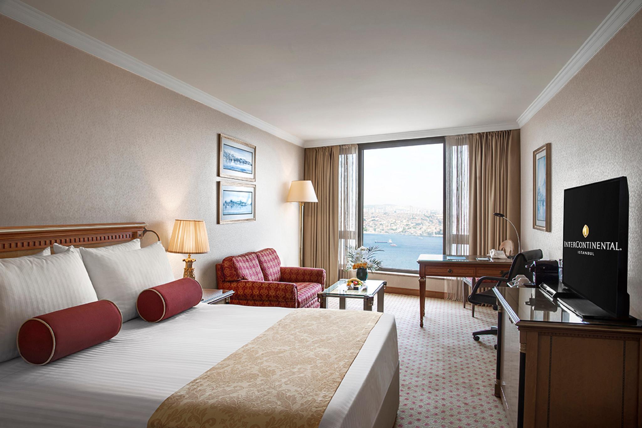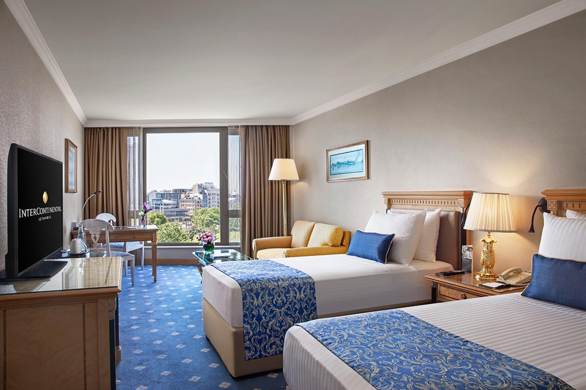 Refurbished in 2013, the hotel comprises a total of 390 rooms spread over 20 floors and features modern, elegantly furnished accommodation suitable for both business and leisure guests. InterContinental Istanbul hotel has deluxe rooms and suites with breathtaking views over the Bosphorus and the historic city skyline. Located in the heart of the city, just a few hundred metres north of Taksim Square and within walking distance many popular attractions, fashionable shops, entertainment venues and the business district. Turkish Airlines shuttle service is close-by and Taksim underground station is less than a 5-minute walk away.Exceptional on-site dining offers everything from gourmet buffet breakfasts to traditional Turkish cuisine. Spa Intercontinental offers an array of services to suit every occasion, traditional Turkish massage incorporating unique soothing balms from across the Middle East, sauna, massage, fitness, cardio.