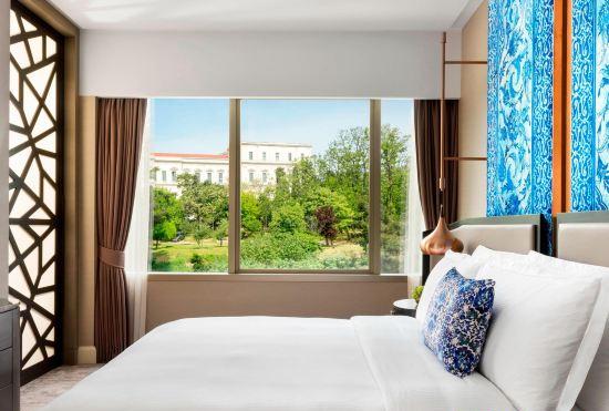 This exclusive city hotel is located right in the elegant district of Dalmabahce and has fantastic views over the Bosporus and the Asian half of Istanbul. In the immediate vicinity, some 100 m away, guests will find countless shops, restaurants, bars, and nightclubs. The nearest public transport stop is approximately 100 m away. Istanbul airport is approximately 25 km from the hotel. Opened in the year 2000, this luxurious city hotel has a thrilling design, combining Roman, Byzantine and Ottoman influences, and comprises a total of 244 rooms set over 14 floors. The stylish, comfortable rooms are all carpeted and come with an array of luxurious amenities. The hotel has an indoor swimming pool and a poolside snack bar. Various SPA treatments are available for guests who wish to relax. Sports enthusiasts may participate in aerobics sessions or work out in the hotel's fully-equipped gym.