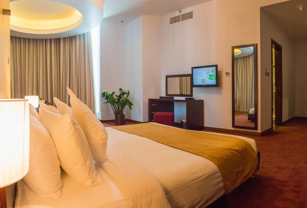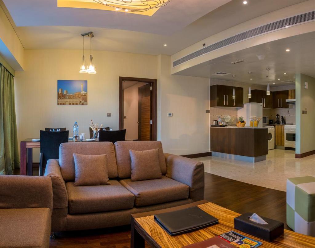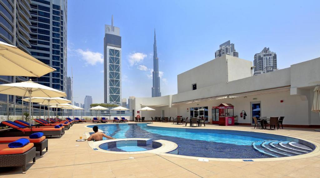 Overlooking the iconic building Burj Khalifa, City Premier Deluxe Hotel Apartments is located in Sheikh Zayed Road within the Business Bay. The hotel offers modern air-conditioned accommodations with floor-to-ceiling soundproofed windows. Suites are categorized from 1-4 bedroom apartments and each features a direct dial telephone, safe deposit box, WiFi internet access, LCD flat screen television, fully equipped kitchen, living and dining area with separate guest toilet. Enjoy Arabic to International cuisines from the in-house restaurants serving buffet breakfast, lunch and dinner. Guests can have fresh drinks, light snacks and sandwiches at the pool side bar. Leisure facilities include a fully equipped fitness centre, outdoor swimming pool and spa. The hotel is 20 minutes drive away from Dubai International airport and just a few minutes walk from the Business Bay metro station*