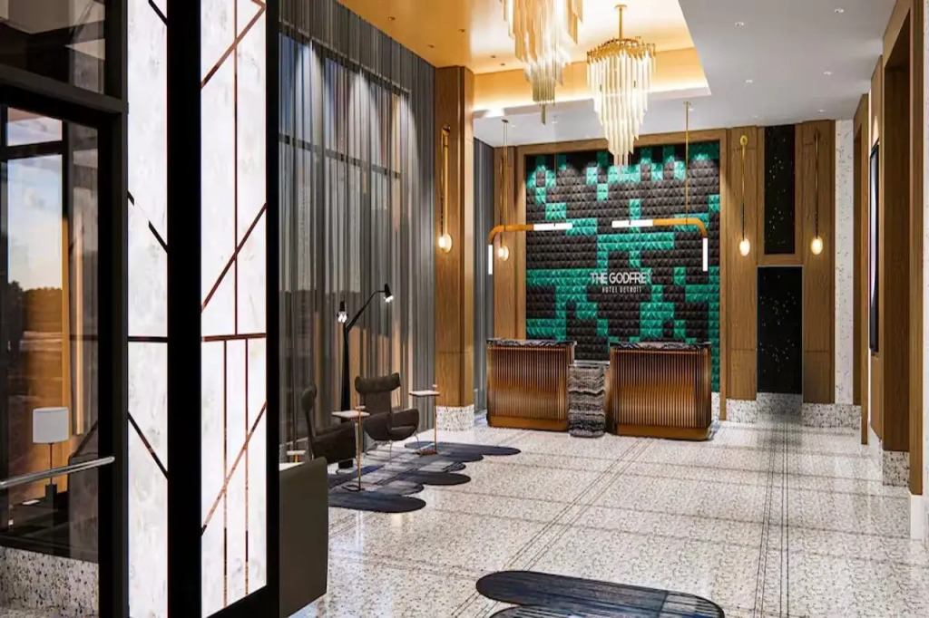Your vacation should be comfortable! Hotel «The Godfrey Detroit, Curio Collection By Hilton» is located in Detroit. This hotel is located minutes away from the city center. You can take a walk and explore the neighbourhood area of the hotel — Mo Pop Festival, Ancient Egyptian Arabic Order of Noble Mythic Shrine and Michigan Central.