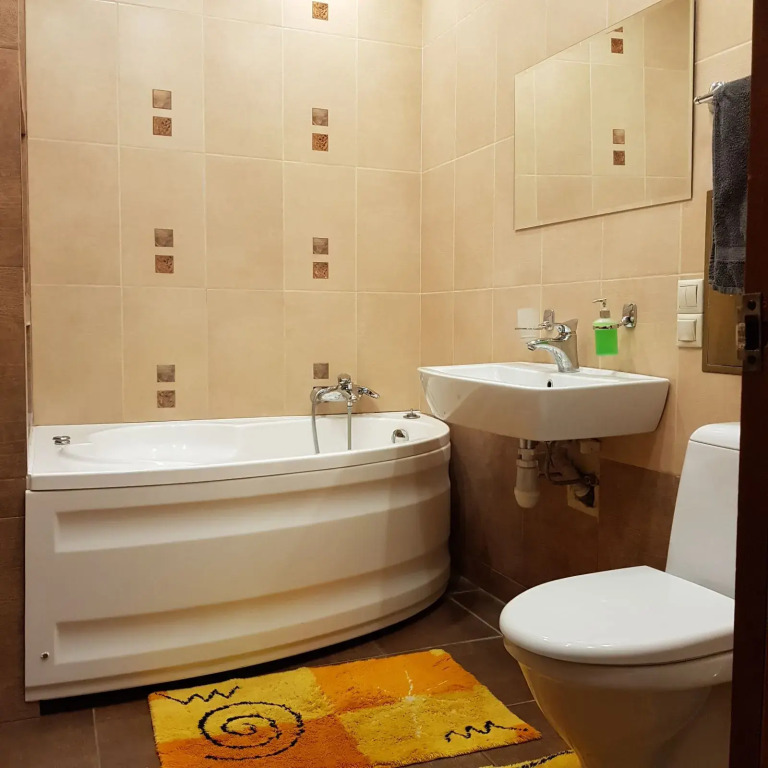 Free Wi-Fi is available on the territory. Ask for more information when checking in. If you travel by car, you can park in a parking zone for free. Take your pet with you. Pets are allowed for an additional cost. Accessibility: there is an elevator/lift..At the guests’ disposal, there’s also ironing. The staff of the apartment will be happy to talk to you in Russian.
