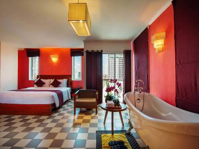 This 4 star hotel is located in the city centre of Phnom Penh and was established in 2016. It is a short drive away from the Wat Phnom, Orussy Market and the nearest station is Catipol Center. The Hotel has an outdoor swimming pool. All 72 rooms are equipped with minibar, hairdryer, safe, trouser press, ironing set and air conditioning.