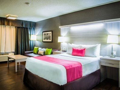 This 2 star hotel is located in the city centre of Calgary. It is close to the Burn Stadium and the nearest station is LRT Train station. The Hotel has a coffee shop and an indoor swimming pool. All 159 rooms are equipped with hairdryer, safe, ironing set and air conditioning.