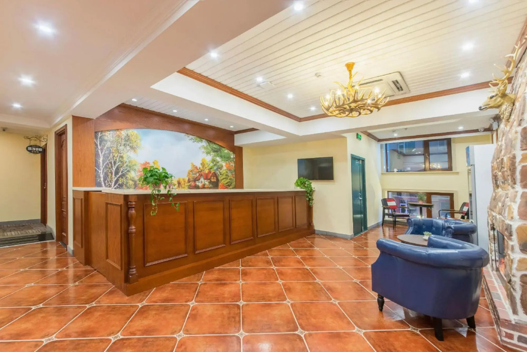 The room is warmly decorated and has everything you need to have a rest after a long eventful day. There is a TV and slippers. The room equipment depends on its category.