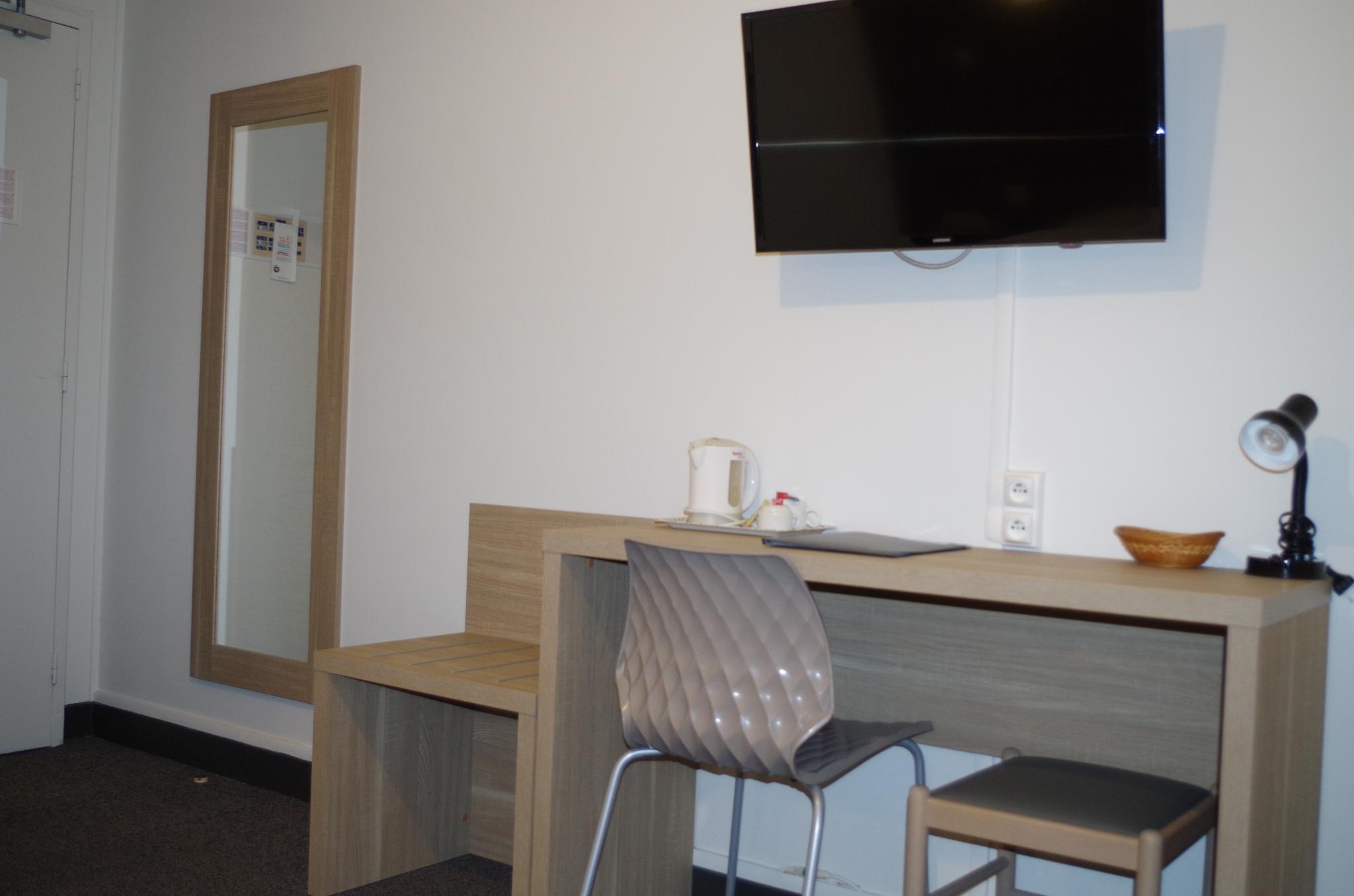 Located only 800 metres from Caen train station; and with direct access to the motorway, the Inter-Hotel Le Savoy is ideally placed for discovering Normandy. 30 comfortable rooms at the Inter-Hotel Le Savoy feature flat-screen TV with Canal+ satellite channels, free Wi-Fi and a courtesy tray. The Inter-Hotel Le Savoy offers quality services to ensure that your stay runs smoothly, whether it is a business or leisure trip. Different types of rooms are available, including family rooms. The restaurant is open from Monday to Friday and serves delicious French cuisine. The friendly and attentive staff at the Inter-Hotel Le Savoy will be happy to help one organise their stay in Caen 24 hours a day. Guests should note that local city tax is not included in the rate booked. This will be charged directly to guests by the hotel and payable at check in/out.