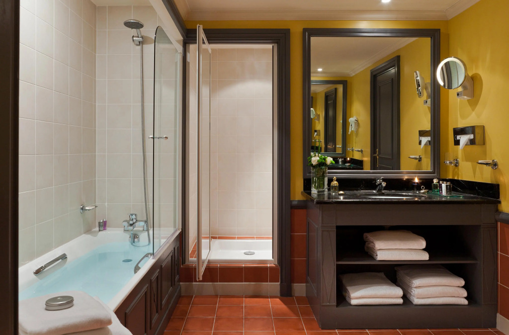 In the room, there is a shower, a TV, a mini-bar, a bathrobe and slippers. Please note that the listed services may not be available in all the rooms.