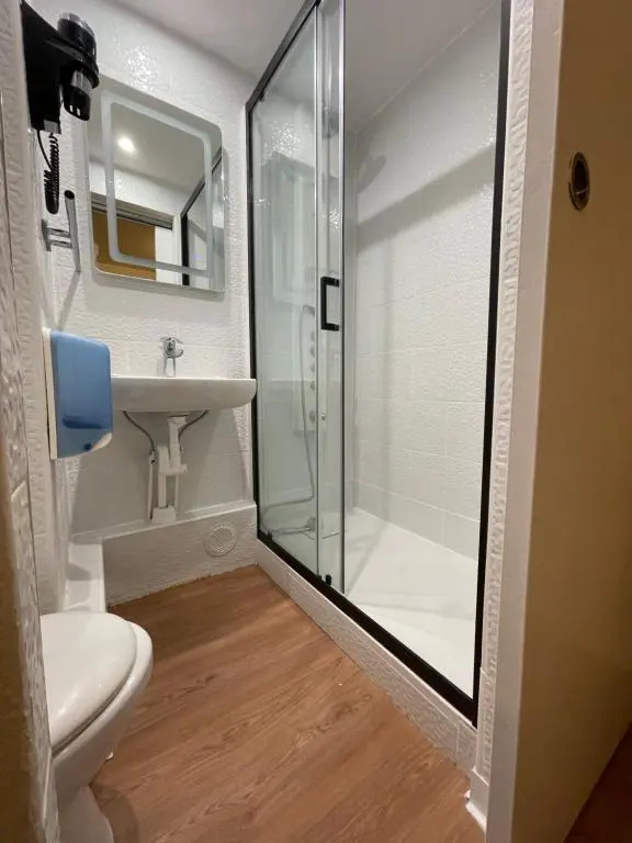 Here’s what you’ll find in the room to have a rest after a long day: a shower and a TV. The room equipment depends on its category.
