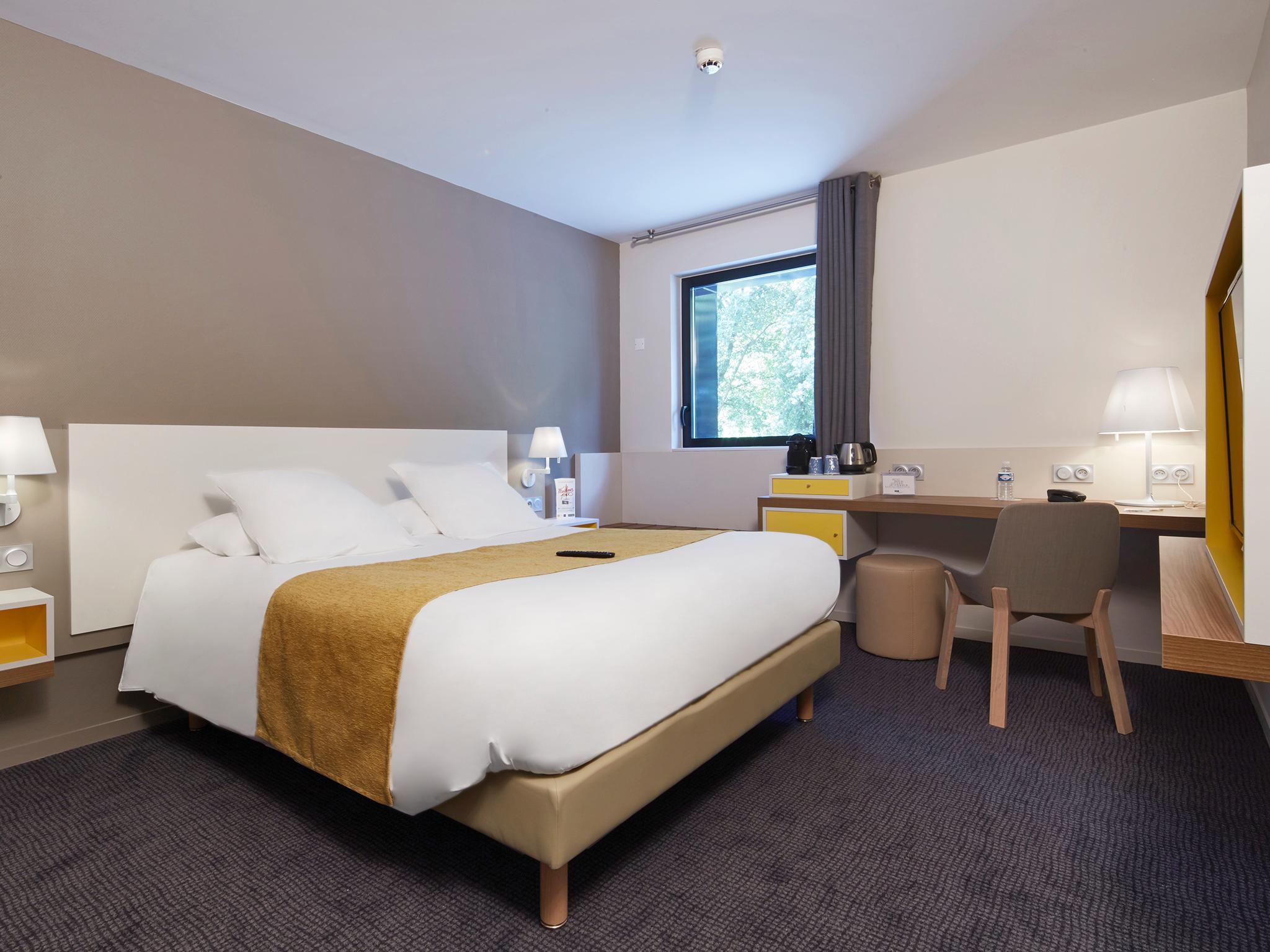 The Kyriad Prestige Pau, is a new built hotel situated in the same area of ZENITH, sports center, racecourse, JAI ALAI (pelota), jogging (Pau's wood). It is also very close from the exit of motorway (500 meters).