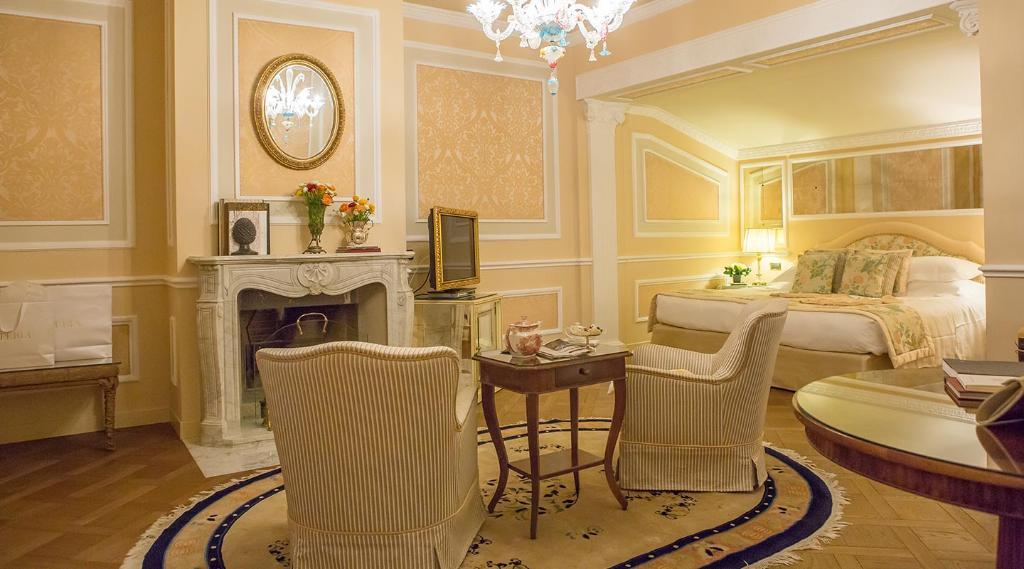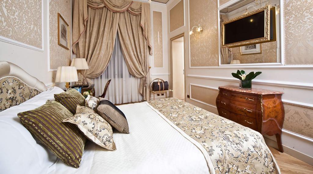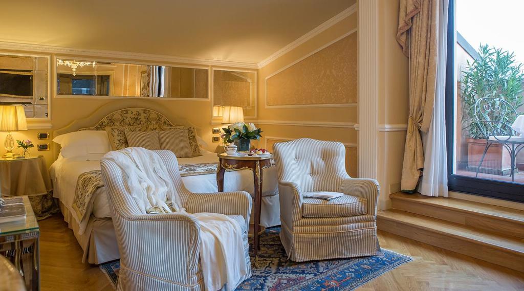 The hotel's guest rooms and suites are lavishly decorated and feature both antique furnishings and modern amenities, all with breath-taking city views. Guests can relax and unwind in the fitness centre with Turkish bath, sauna and chromo therapy shower, and the meeting area is ideal for a productive business meeting with its large foyer and cosy interior terrace. The sophisticated restaurant serves traditional regional dishes with an elegant and refined ambiance, and the restaurant is known for its beautiful fifteenth-century paintings and frescoes.