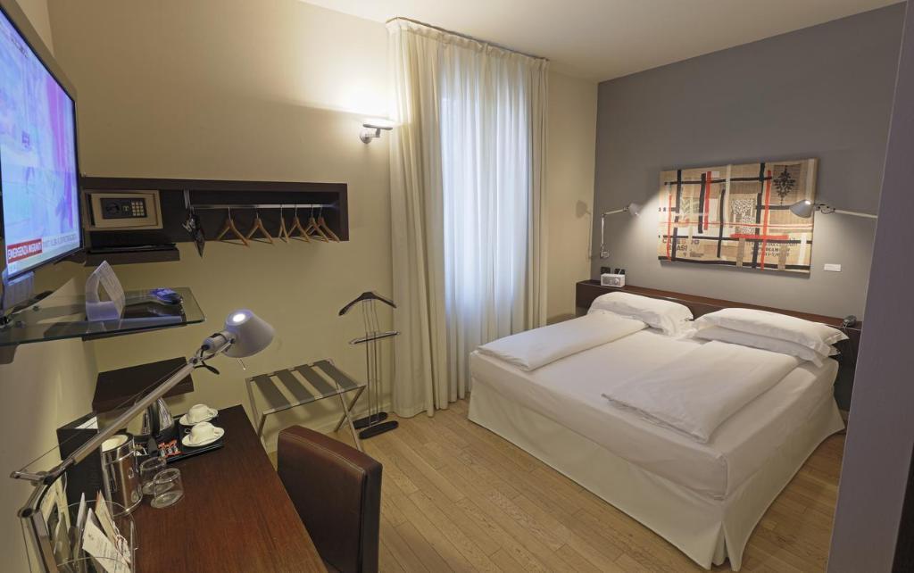This upscale hotel boasts a prime setting in the city centre of Bologna. Guests will find themselves surrounded by the many attractions that the city has to offer. The station is situated nearby, offering ease of access to other areas to be explored. This hotel enjoys an attractive design, blending effortlessly with its surroundings. The stylish guest rooms offer modern conveniences and functional space, in which to work and rest in comfort. This hotel provides guests with access to a broad range of facilities and services. Combined with a homely ambiance and friendly staff, this hotel fails to disappoint.