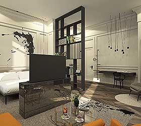 The Kazan Palace by Tasigo hotel is an example of oriental hospitality and cordiality in a cultural heritage building. The hotel has 66 rooms of different categories: stylish and laconic comfort class rooms, mansard rooms located under the roof, spacious grand rooms and a luxurious presidential suite with a jacuzzi. The setting combines thoughtful modern design and layout with home comfort and ideal service. The calm palette of colors in the interiors of the rooms sets the mood for relaxation, and objects of art, paintings, elements of designer decor and designer furniture give the decoration of each room a bright individuality and emphasize the avant-garde aesthetics of the hotel.