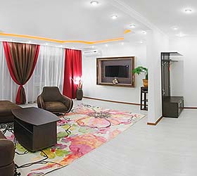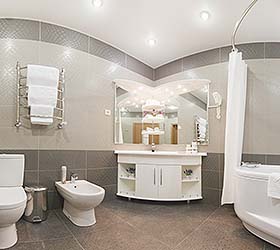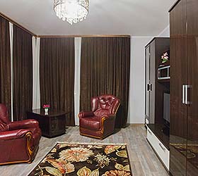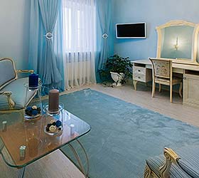 The hotel offers for accommodation comfortable rooms, each fitted with everything required for work and rest. The rooms include - TV, mini bar, air conditioning, fridge, hair-dryer, bathroom with full set of toiletries.