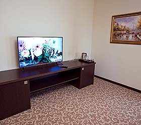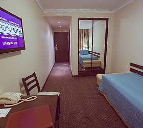 The hotel offers 40 equipped and comfortable rooms, private bathrooms, minibars, tea station, interactive TV, safety deposit boxes. The hotel offers also a cozy restaurant and room service. The restaurant allows guests to enjoy a wide choice of dishes of Russian and European cuisine.