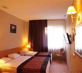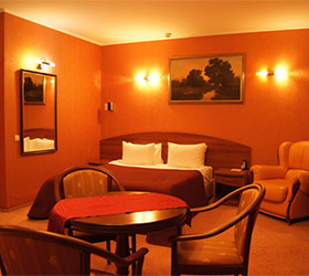 The hotel provides accommodation in modern and stylish rooms of various categories - Economy, Standard, Junior Suite, Suite. The Standard room includes: hall - wardrobe, luggage rack, mirror, umbrella, shoe-cleaning kit; bedroom - two single or double beds, bedside tables, desk, chair, telephone, plasma panel, wall split air conditioner, fridge, Wi-Fi Internet; bathroom - modern fitment, shower, hairdryer, bathrobe, snowy towels, toiletries. Upon individual request, a safe, a music library of Russian and foreign musical performers, a collection of new films and masterpieces of world cinema are provided. Rooms of superior categories additionally offer - hydro-massage shower or jacuzzi bathtub, leather sofa.