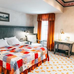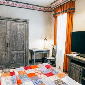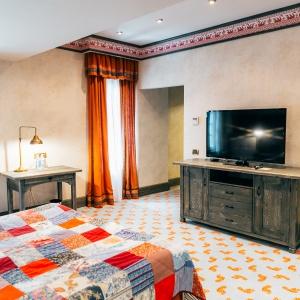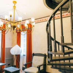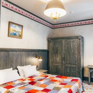 Boutique Hotel Kizhi has only six rooms. They are very spacious, the smallest is 36 sq.m. The highlight of the hotel is a two-storey suite with a spiral staircase with two bedrooms for a large family or company. The incredible atmosphere of the rooms captivates guests at first sight: heavy furniture made of solid wood, Russian script painting under the ceilings, author's brass lamps - here you seem to be transported for a moment to the era of the merchant class. They decorate the space of the rooms and emphasize the Russian spaciousness - the contrast of colors, colorful patterns on quilted blankets and soft carpets.