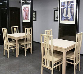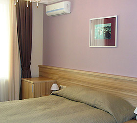 Aquarel Hotel offers 7 rooms, each designed in unique color palette - crimson, brick red, olive, lavender, yellow, green, sky blue. The rooms are appointed for single and double accommodation and decorated with water-color pictures of a famous Tver painter. The list of in-room amenities includes - double bed or twin beds, luggage case, hanger, wardrobe, multi-purpose table, chair, bedside tables, air conditioning, LCD TV with DVD, IDD telephone, in-room safe, Wi-Fi Internet. The en-suite bathrooms feature modern fitment, hair-dryer, set of snowy towels and toiletry accessories.