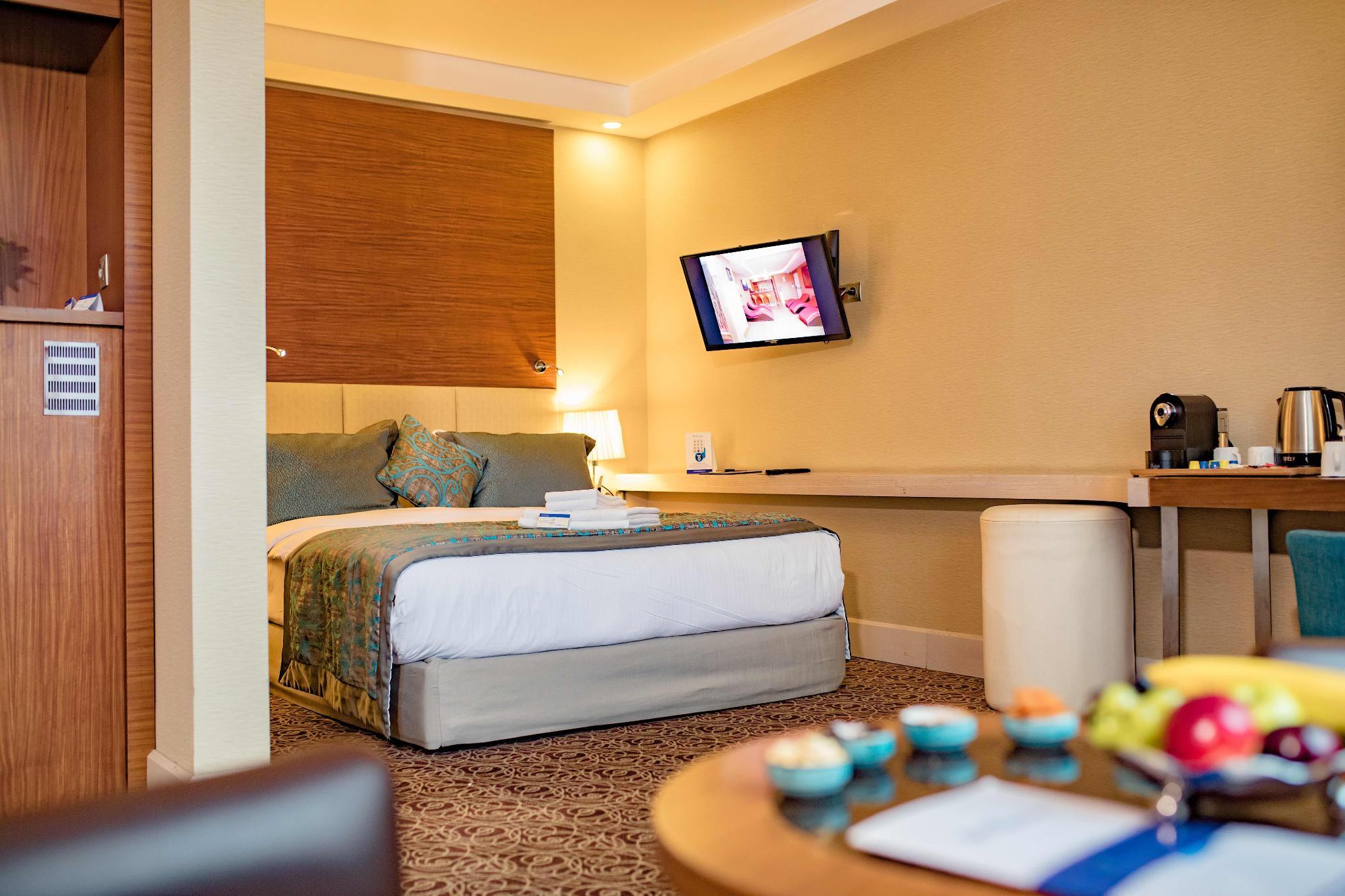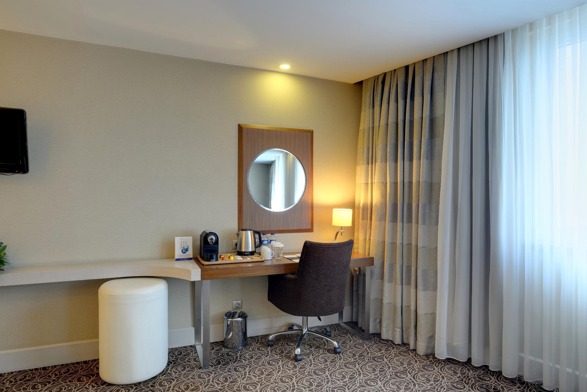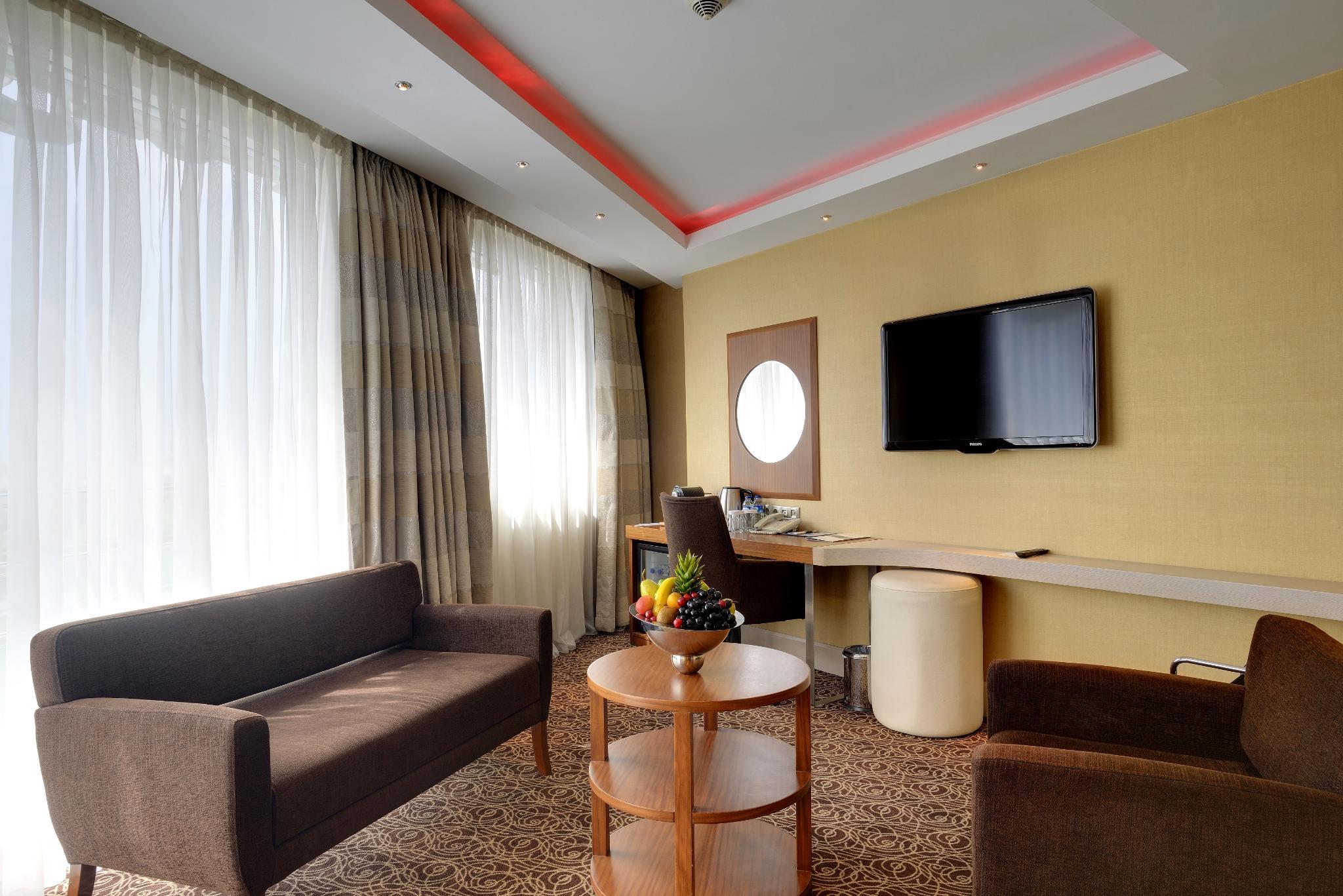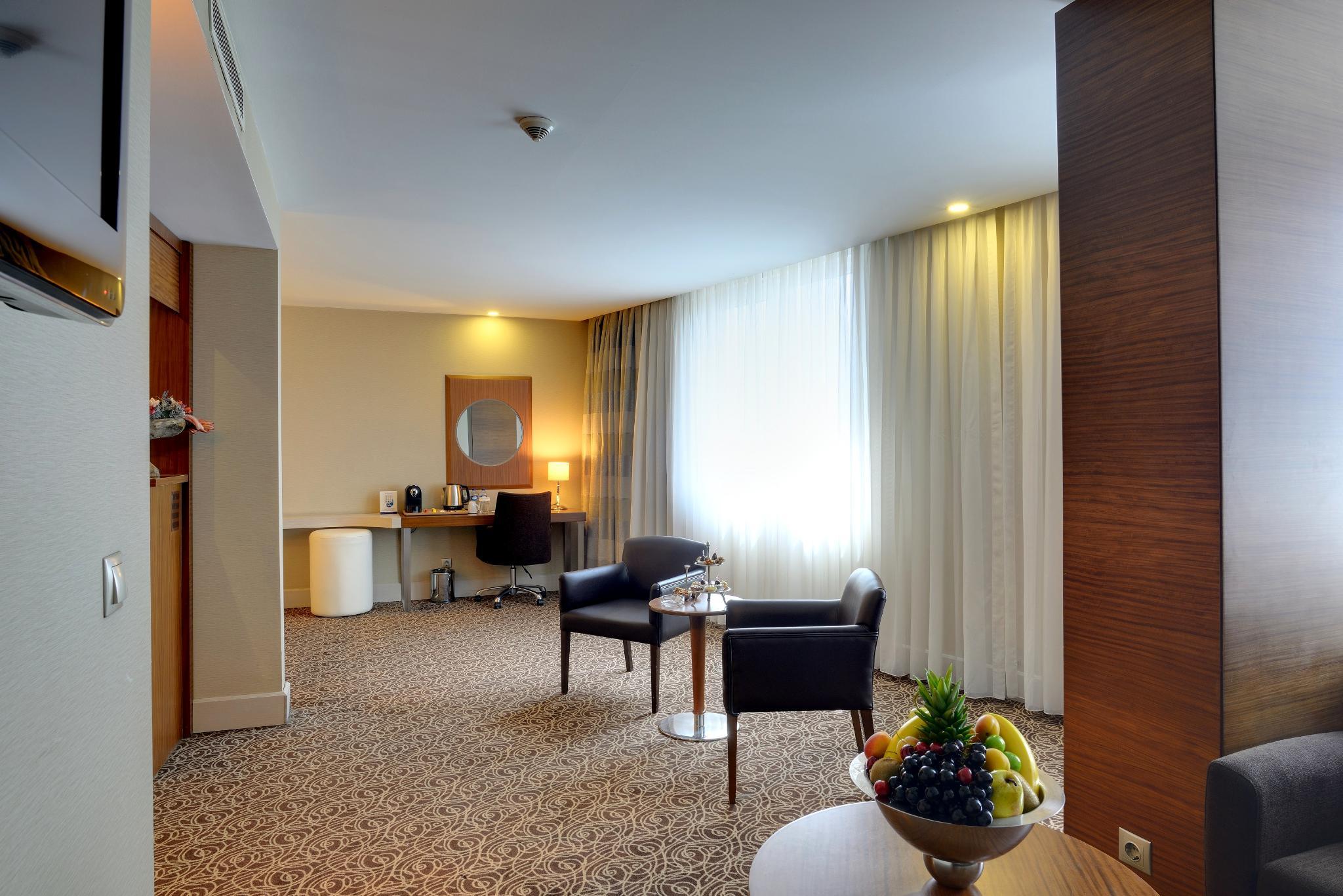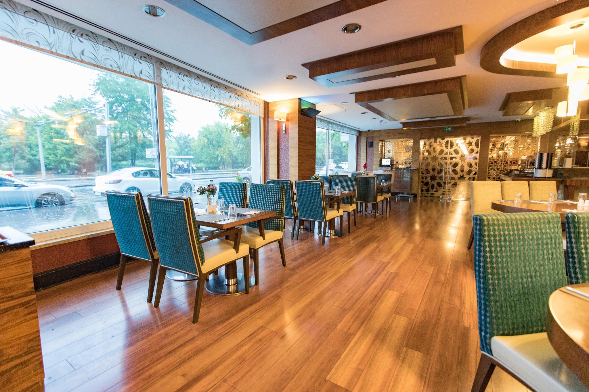 Located in the Cankaya district of Ankara, this city hotel is close to many embassies, government buildings, shopping and entertainment centres. Enjoying views of Kurtulus Park across from the hotel, Kolej metro station is within a few metres walk, allowing easy access around the city. Featuring modernly furnished and fully equipped guest rooms suitable for business and leisure travellers alike, guests will enjoy the comfort and convenience they provide. Breakfast is served in the pleasant hotel's own restaurant and for daytime refreshment, there is an attractively styled terrace lounge. After a day's sight-seeing or conducting business, guests can benefit from the hotel's spa and health centre for a relaxing sauna or Turkish Bath.