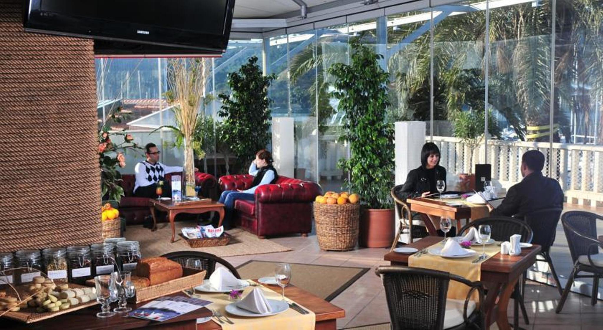 This charming hotel is situated in the southwest of Turkey and only a few minutes away from the centre of Fethiye. The nearest public transport stop is just a few steps away and a vast array of shopping venues as well as plenty of gastronomy options such as restaurants, bars and cafes along with scores of other entertainment venues await guests in Fethiye. A diverse nightclubbing scene is located only 100 m away and the inviting beach with its turquoise blue sea is just 150 m from the hotel. The transfer time the international airport takes around 60 minutes by car (50 km away).