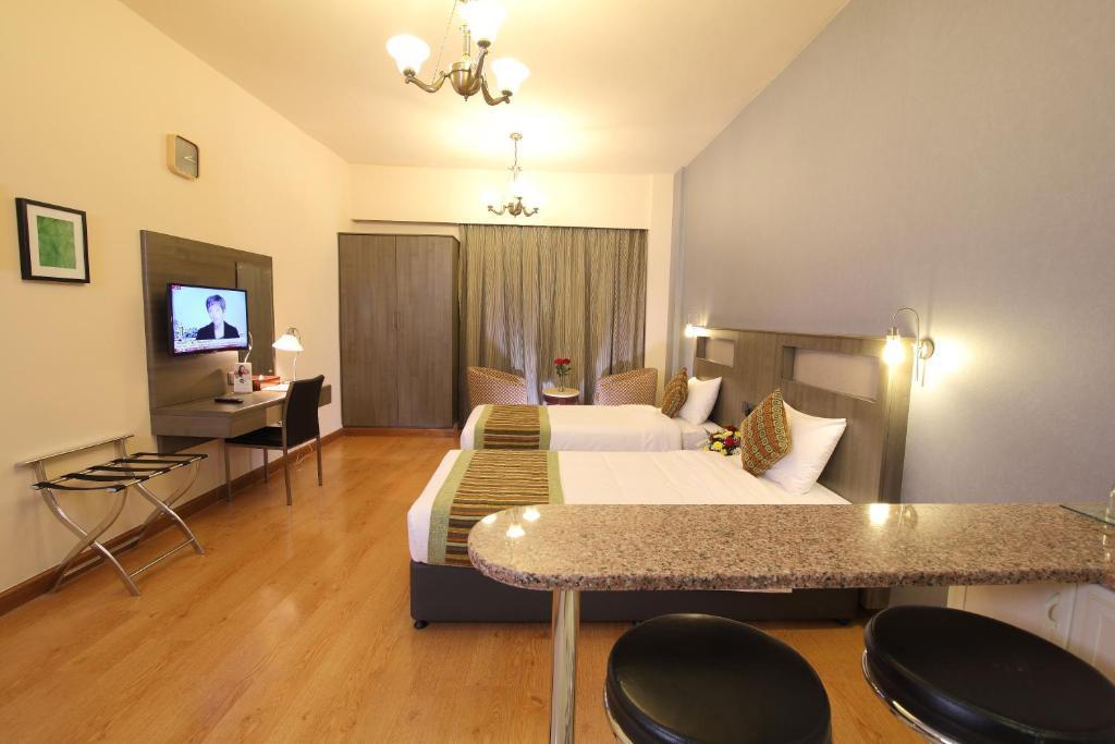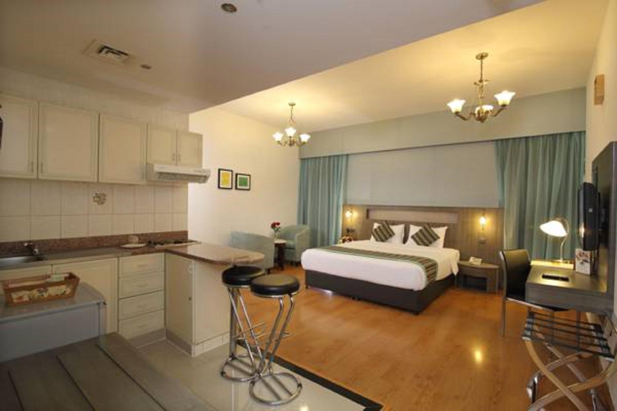 The air-conditioned hotel offers a choice of 90 well-appointed studio apartments, featuring contemporary furnishings and state-of-the-art amenities. The hotel also provides a lobby, restaurant, coffee shop, conference facilities and room service.