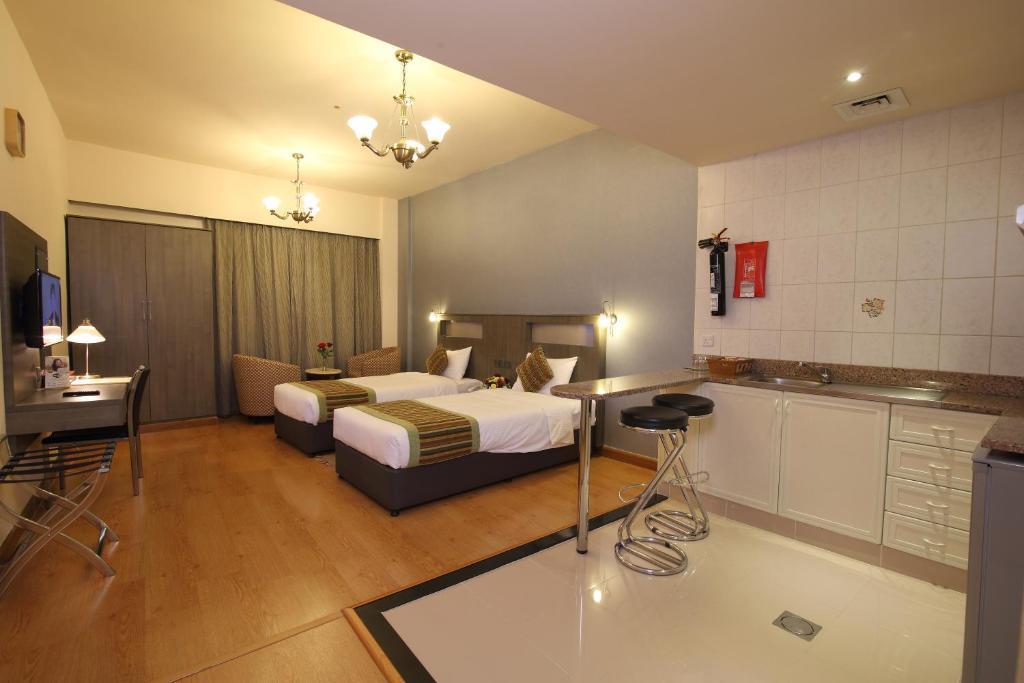 This apartment hotel is superbly located at Baniyas Square in Deira, close to an array of shopping centres, including the Dubai World Trade Centre, which is 10 minutes' drive away.