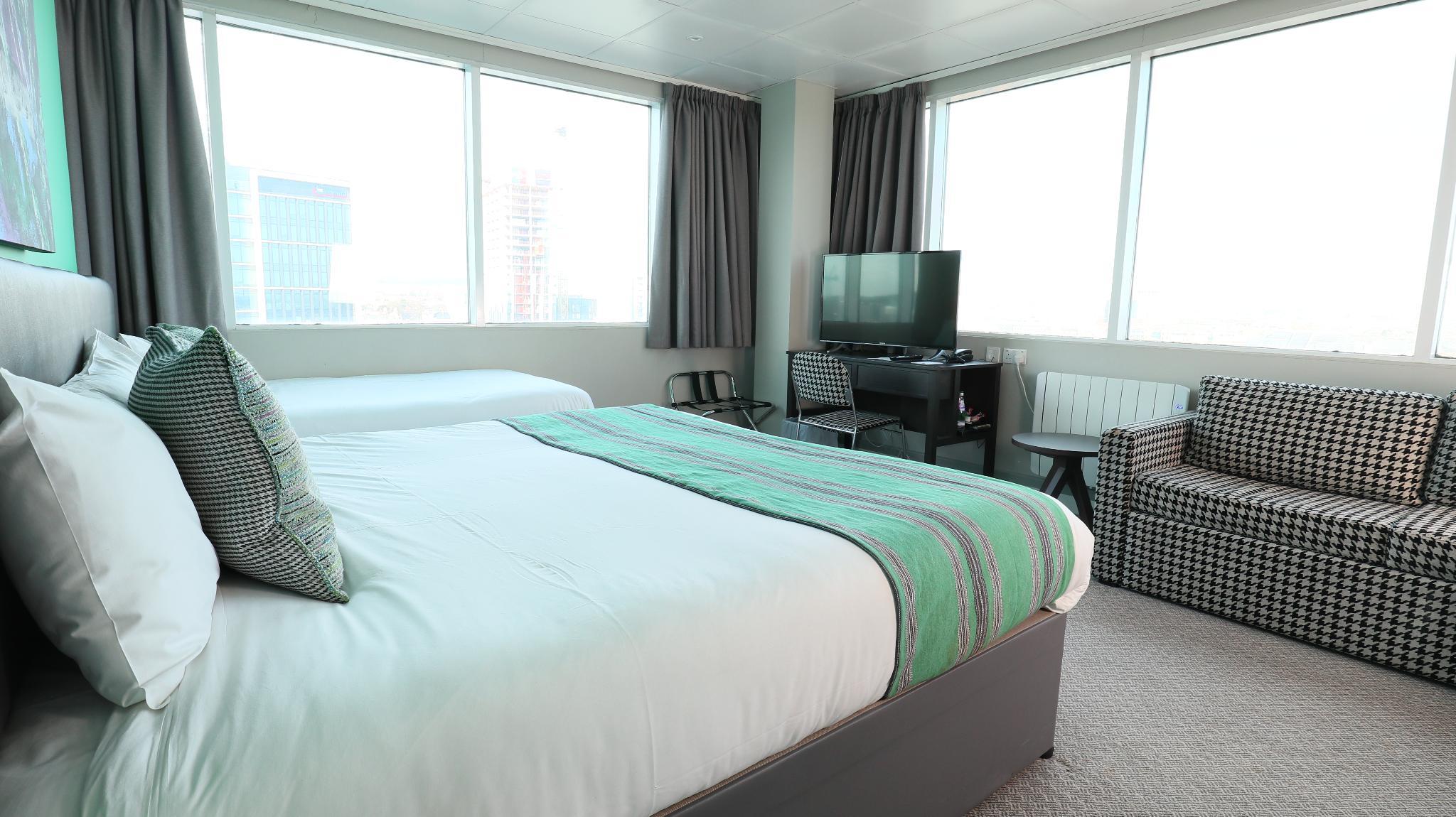 This fabulous Cardiff City Centre Hotel is perfect for those looking for budget accommodation with a difference - great value with a designer feel. All bedrooms have Wi-Fi, complimentary tea and coffee making facilities, Super King Beds, Smart TV, views of the city.Car parking is available on a first come first parked basis and is chargeable.