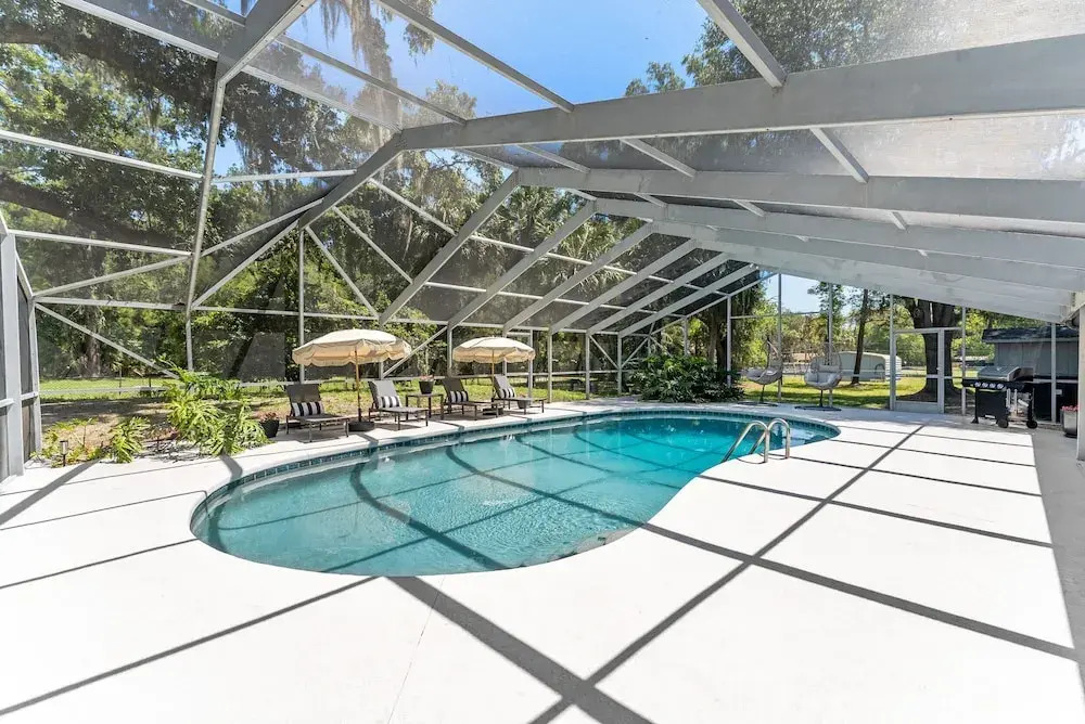 A great place for travellers looking for a neighbours-free vacation! Cottage «Designer Pet-friendly Retreat With Heated Pool 5 Bedroom Home» is located in Ocala. This cottage is located in 3 km from the city center. You can take a walk and explore the neighbourhood area of the cottage. Places nearby: Kindred Hospital Ocala and HCA Florida Ocala Hospital.