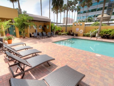 This 3 star hotel is located in the city centre of Tampa and was established in 1986. It is a short drive away from the Florida Aquarium and the nearest station is Amtrak Station Building. The Hotel has a coffee shop, an outdoor swimming pool and a fitness centre/gym. All 272 rooms are equipped with hairdryer, ironing set and air conditioning.