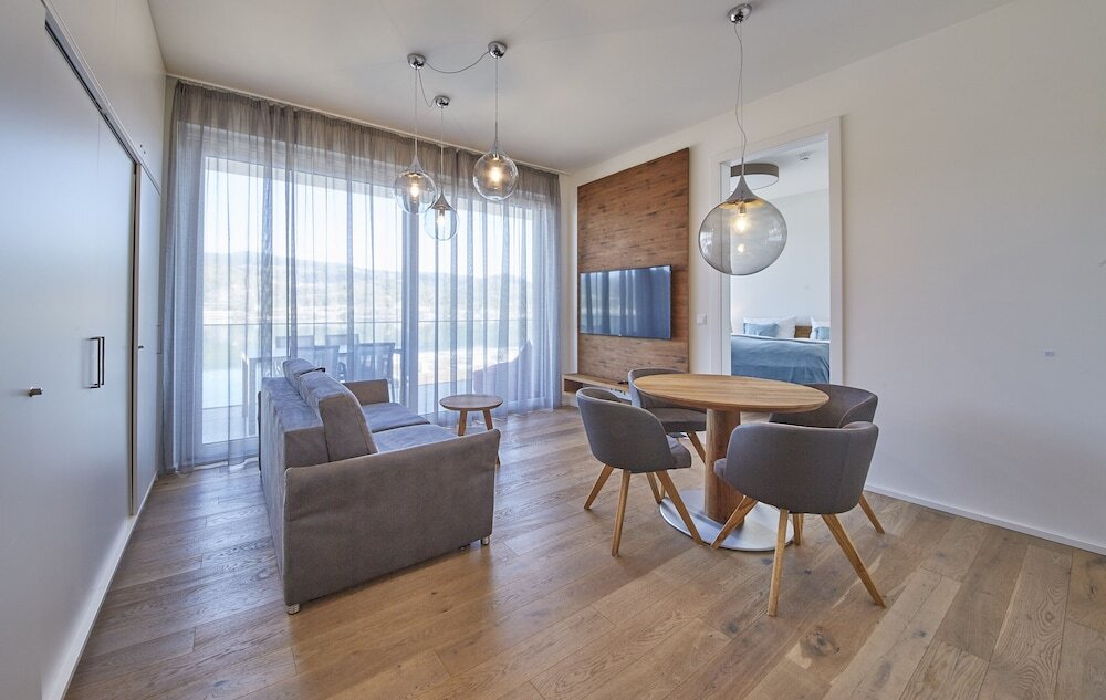 <p><b>Полезная информация</b> <br /><ul> <li>Один ребенок не старше 5 -летнего возраста проживает в отеле бесплатно при условии размещения в номере родителя/опекуна без предоставления дополнительной кровати. </li><li>В номера допускаются только зарегистрированные постояльцы. </li> </ul></p><p><b>Дополнительные платежи</b> <br /><p>Следующие платежи и залоги взимаются отелем во время оказания соответствующей услуги, при регистрации по прибытии или регистрации при отъезде. </p> <ul> <li>Доплата за завтрак (шведский стол): 20 EUR для взрослых и 15 EUR для детей (приблизительно)</li> <li>Плата за уборку зависит от продолжительности пребывания и размера номера</li> </ul> <p>Возможно, приведенный выше список неполон. Суммы платежей и залогов могут быть указаны без учета налога и могут быть изменены. </p></p><p><b>Обязательные налоги и сборы</b> <br /><p>Следующие дополнительные сборы оплачиваются в отеле:</p> <ul><li>Городской налог: 2.60 EUR за человека за ночь</li><li>Плата за уборку: 100.0 EUR за номер за пребывание </li><li>Оплата курортных услуг: 2.6 EUR за человека за ночь</li></ul> <p>Приведенный перечень содержит все указанные отелем сборы. Однако взимаемая сумма может изменяться в зависимости, например, от бронируемого номера или продолжительности пребывания. </p> Этот отель взимает следующую обязательную плату за уборку за весь период проживания (оплачивается в отеле): 75 евро при бронировании апартаментов Sun downer, 75 евро при бронировании апартаментов Lake apartment и 100 евро при бронировании апартаментов Lake apartment deluße, пентхаус. Для получения более подробных сведений свяжитесь с отелем по номеру телефона, указанному в электронном письме с подтверждением бронирования.</p>