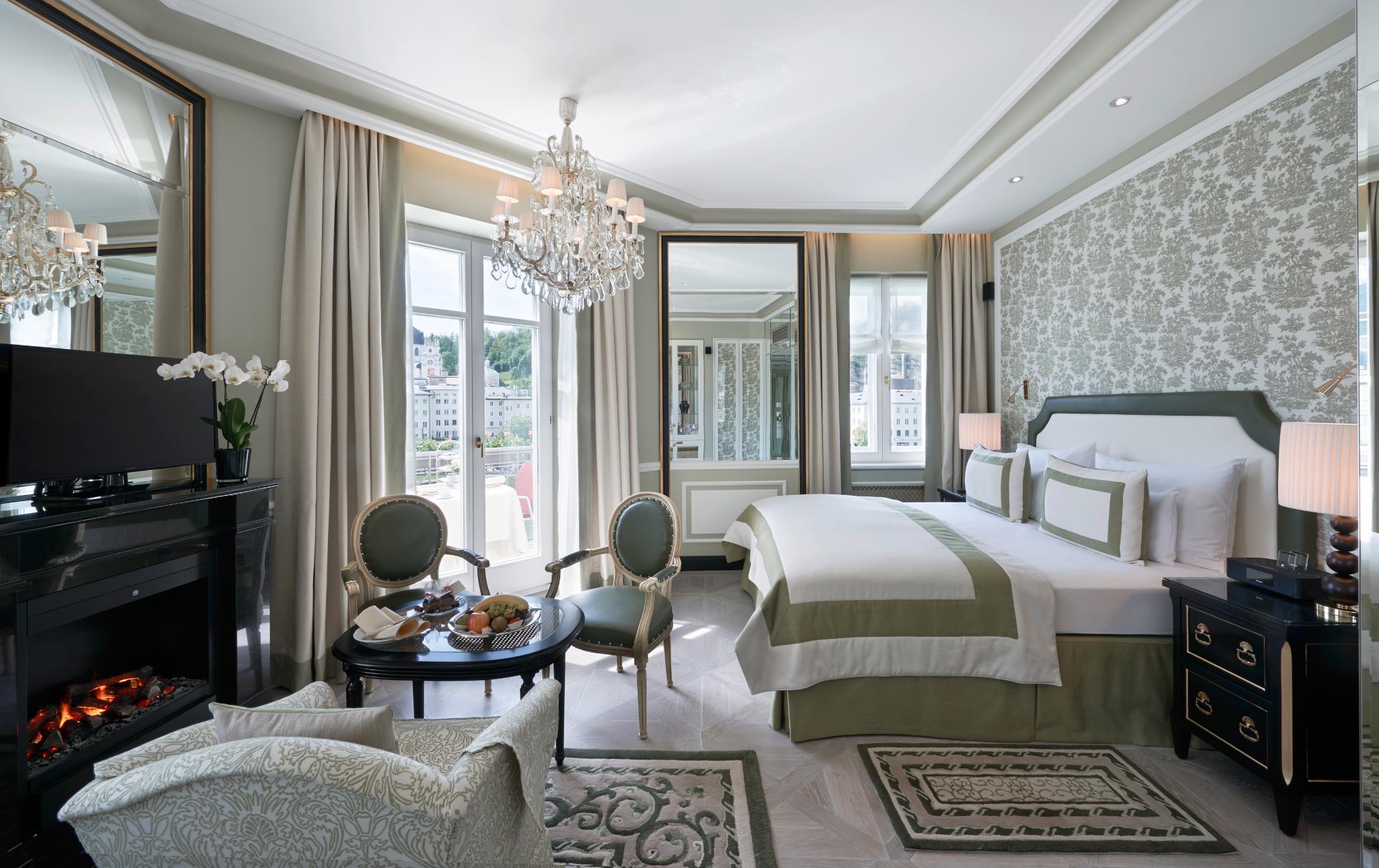 This luxury hotel enjoys a central location directly beside the River Salzach and offers magnificent views of the old town of Salzburg and the fortress Hohensalzburg. It is just 20 m to links to the public transport network. Housed in a building that dates back to 1866, this grand hotel comprises a total of 109 elegant and individually decorated rooms and suites. The Hotel offers an authentic Austrian cafe house, a piano bar and 2 restaurants. Those arriving by car may make use of the hotel garage facilities. The luxurious rooms each come well-equipped as standard and with a marble bathroom. Leisure options include the Health Club. Sports enthusiasts may enjoy a workout in the hotel. The wooden panelled Gourmet restaurant Zirbelzimmer is a favourite meeting place. The Sacher Grill offer specialties from the charcoal grill in a casual atmosphere.