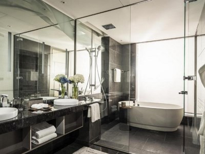 Make yourself at home in one of the 190 guestrooms featuring minibars and espresso makers. 60-inch LCD televisions with satellite programming provide entertainment, while complimentary wireless Internet access keeps you connected. Bathrooms with separate bathtubs and showers feature deep soaking bathtubs and rainfall showerheads. Conveniences include phones, as well as safes and desks.