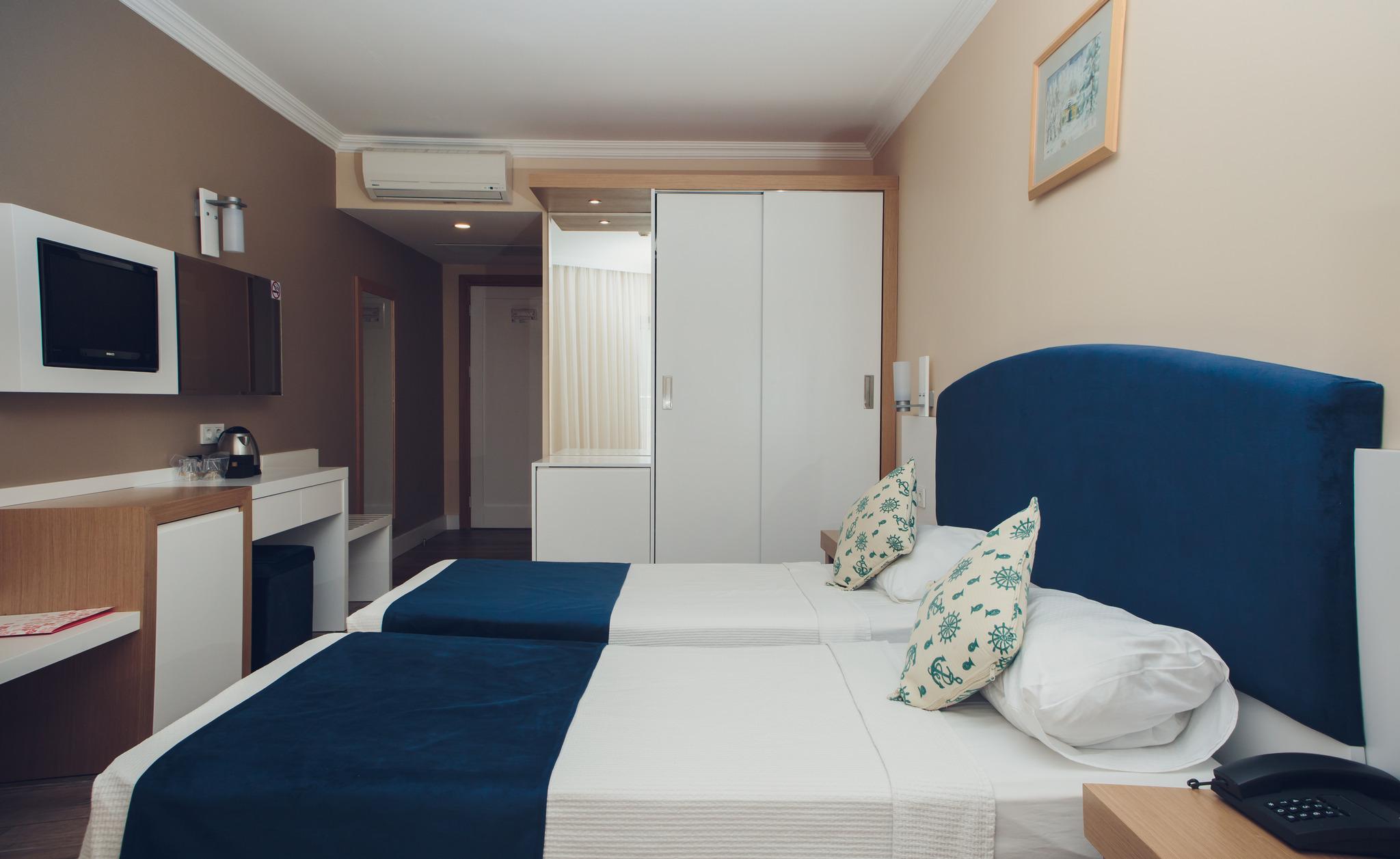 *** We have Safe Tourism Certificate***Centrally situated, this hotel is ideally placed for enjoying the many amenities to be found in Kemer, with cafe bars, restaurants and shops all nearby. Additionally, the picturesque yacht marina is just a couple of minutes' walk away. With a unique architectural style, the building and upper floors surround the outdoor pool forming an atrium facing the promenade and shingle beach where guests can benefit from the hotel's own sunbeds and umbrellas for a relaxing sunbathe. The Mediterranean atmosphere can be enjoyed with cocktails by the pool side and in the variety of delicious dishes served in the restaurant..